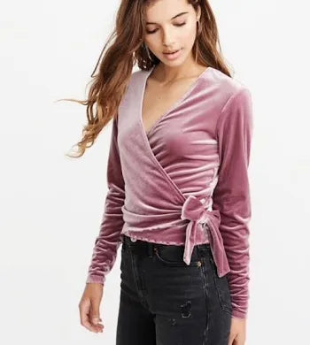 Abercrombie & Fitch Velvet Long Sleeve Wrap Top Womens Size M Blush Pink Ballet
