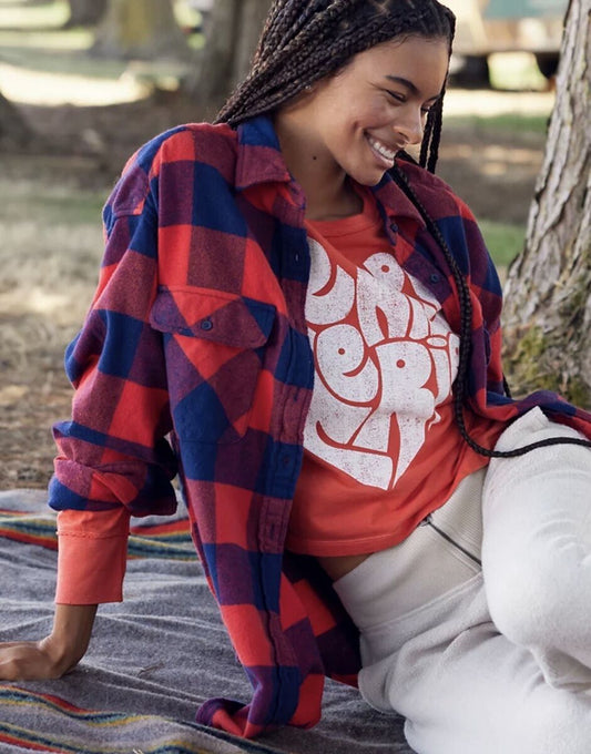 Aerie LumberJane Flannel Shirt in Holiday Red & Navy