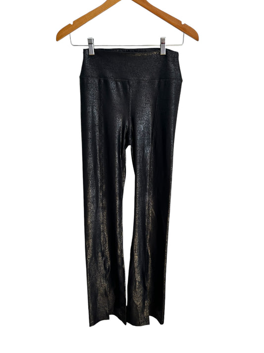Mono B Foil Printed Front Slit High Waist Wide Leg Leggings