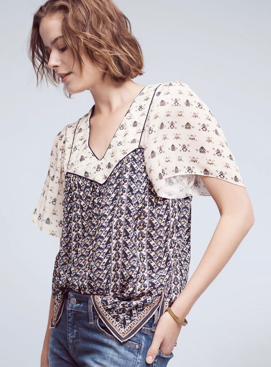 Anthropologie Printed Luca Blouse- Blue Motif Size Small