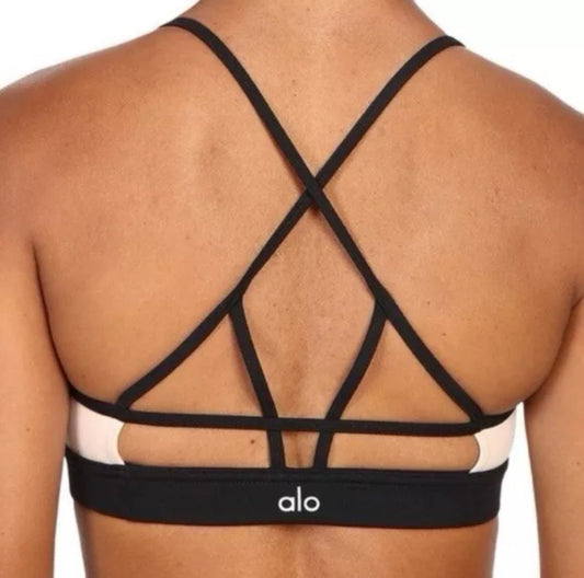 Alo Yoga Radiance Strappy back Sports Bra Black White Lined Women's Size M