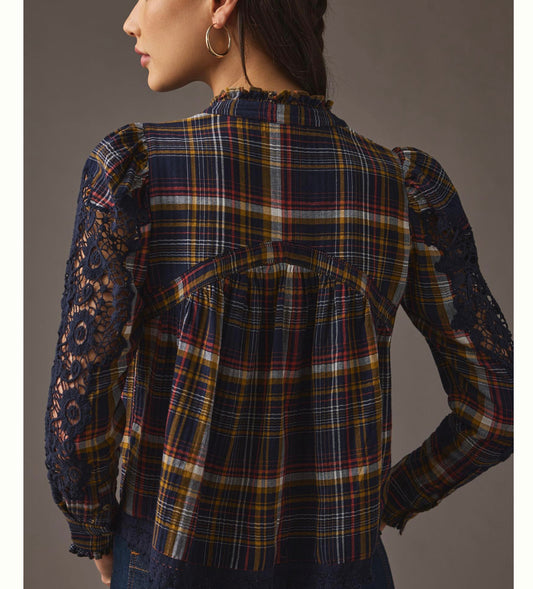 Anthropologie Pilcro Lace-Trimmed Blouse