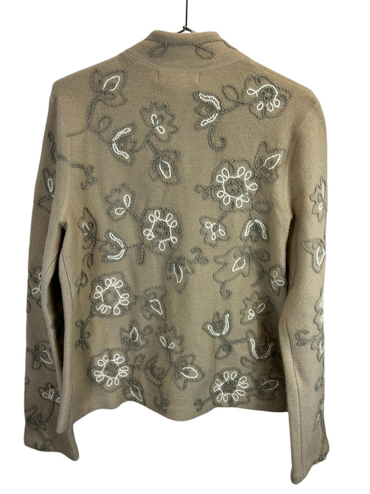 Jones New York Size Medium Jacket Merino Wool Embroidered Beige Womens