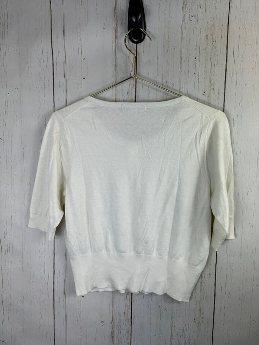 Boden Cardigan Sweater Short Sleeve Cropped Round Neck White