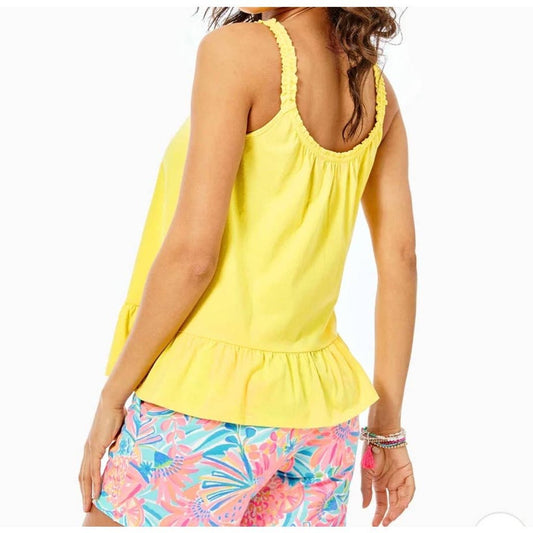 Lilly Pulitzer Scoop Neck Ruffle Strap Swing Flounce Loro Tank Top Yellow Medium