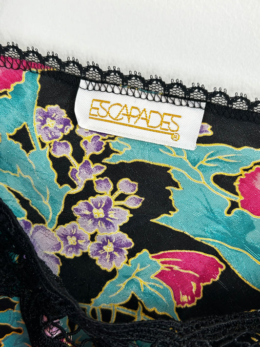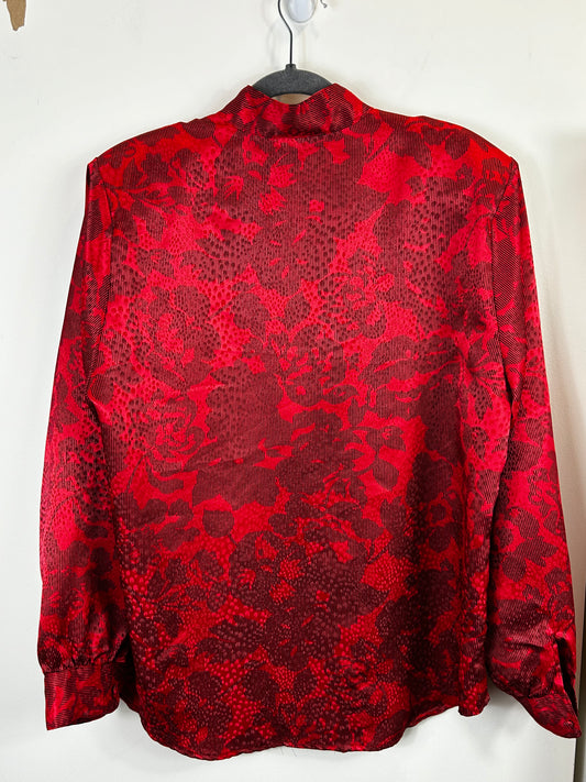Vtg Notations Clothing Co. Blouse Women’s 90s Satin Red & Black Button Up