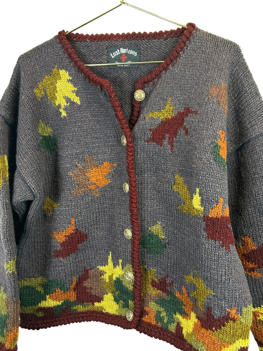 Vintage Lost Horizons Cardigan Sweater Women Hand Knit in Nepal- Wool