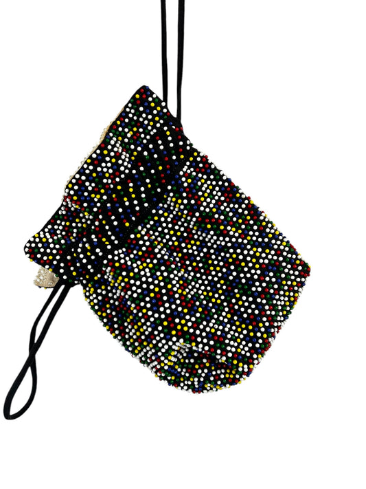 Vintage Mid Century Candy Dot Beaded Drawstring Reversible Handbag Purse