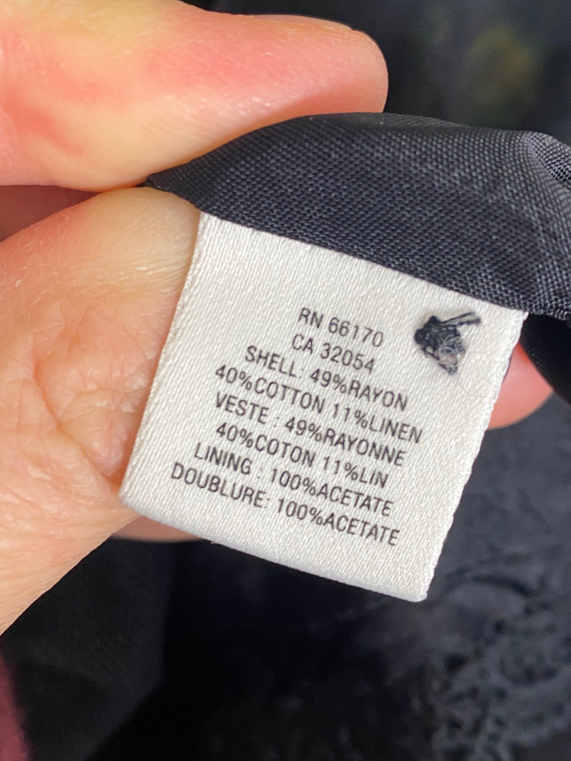 49% rayon, 40% cotton, 11% linen (shell); 100% acetate (lining)