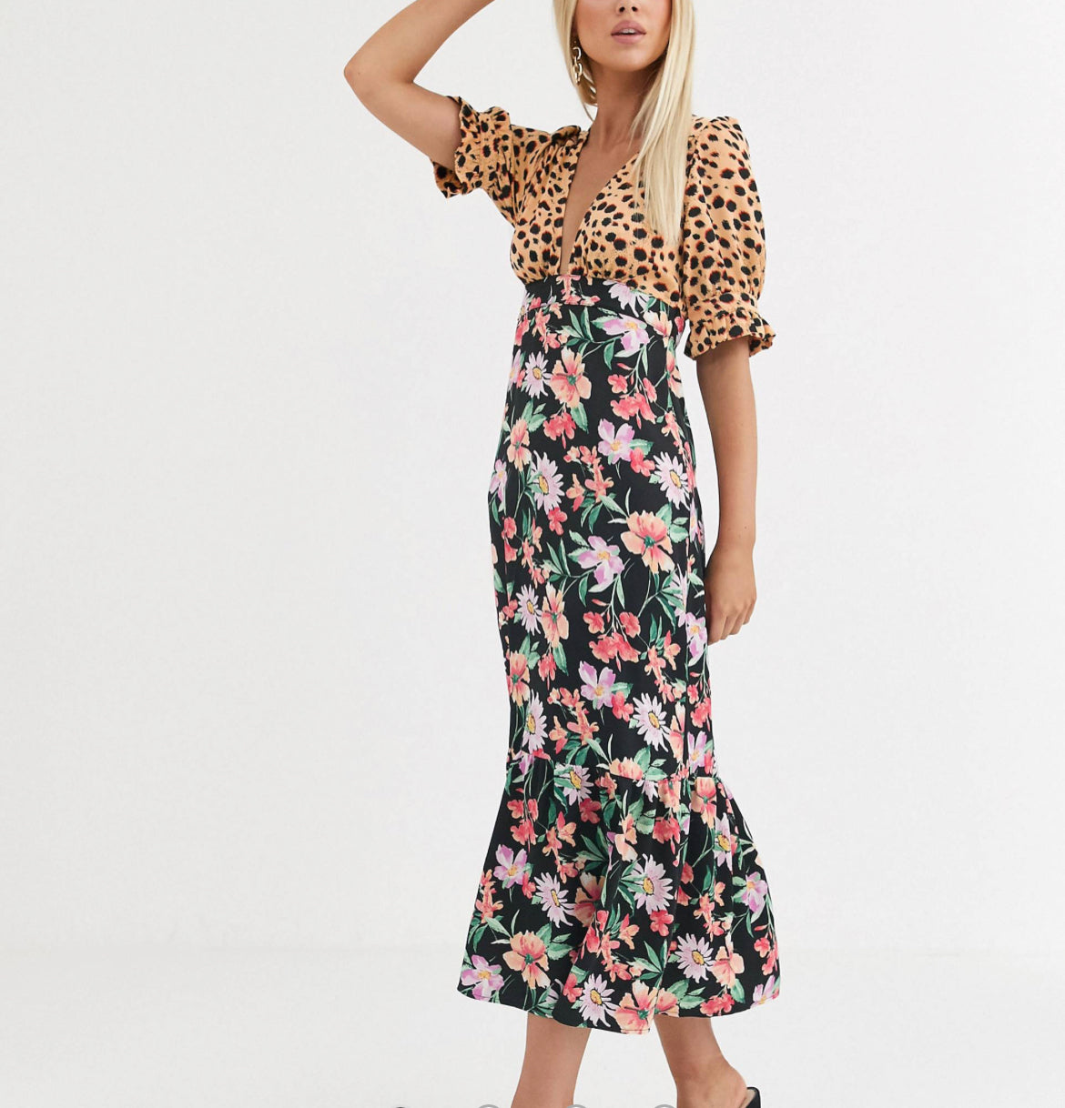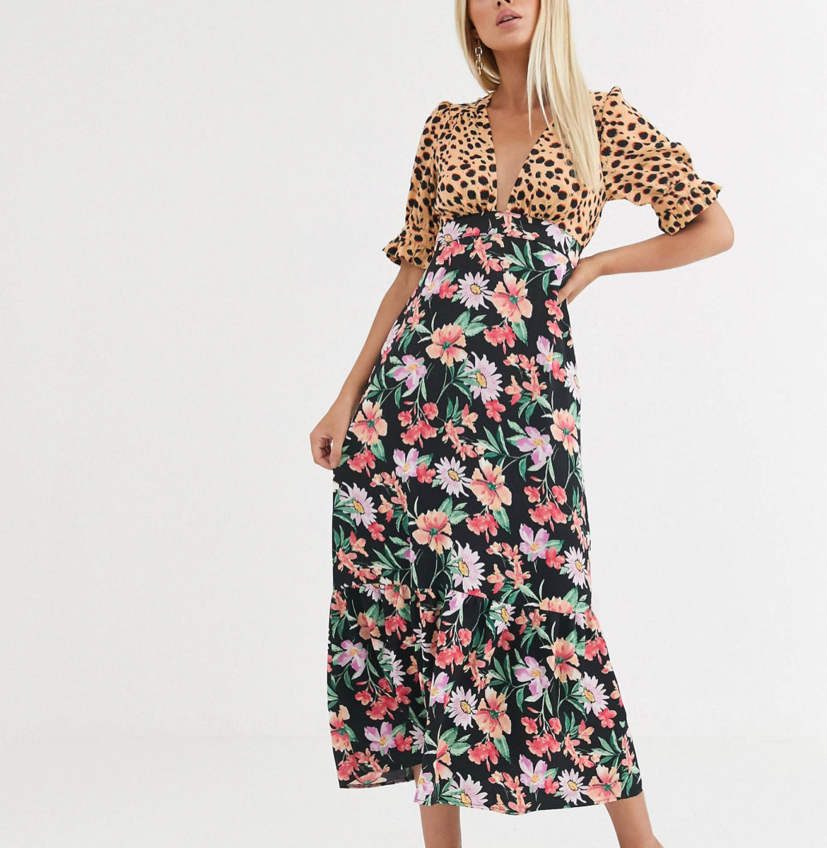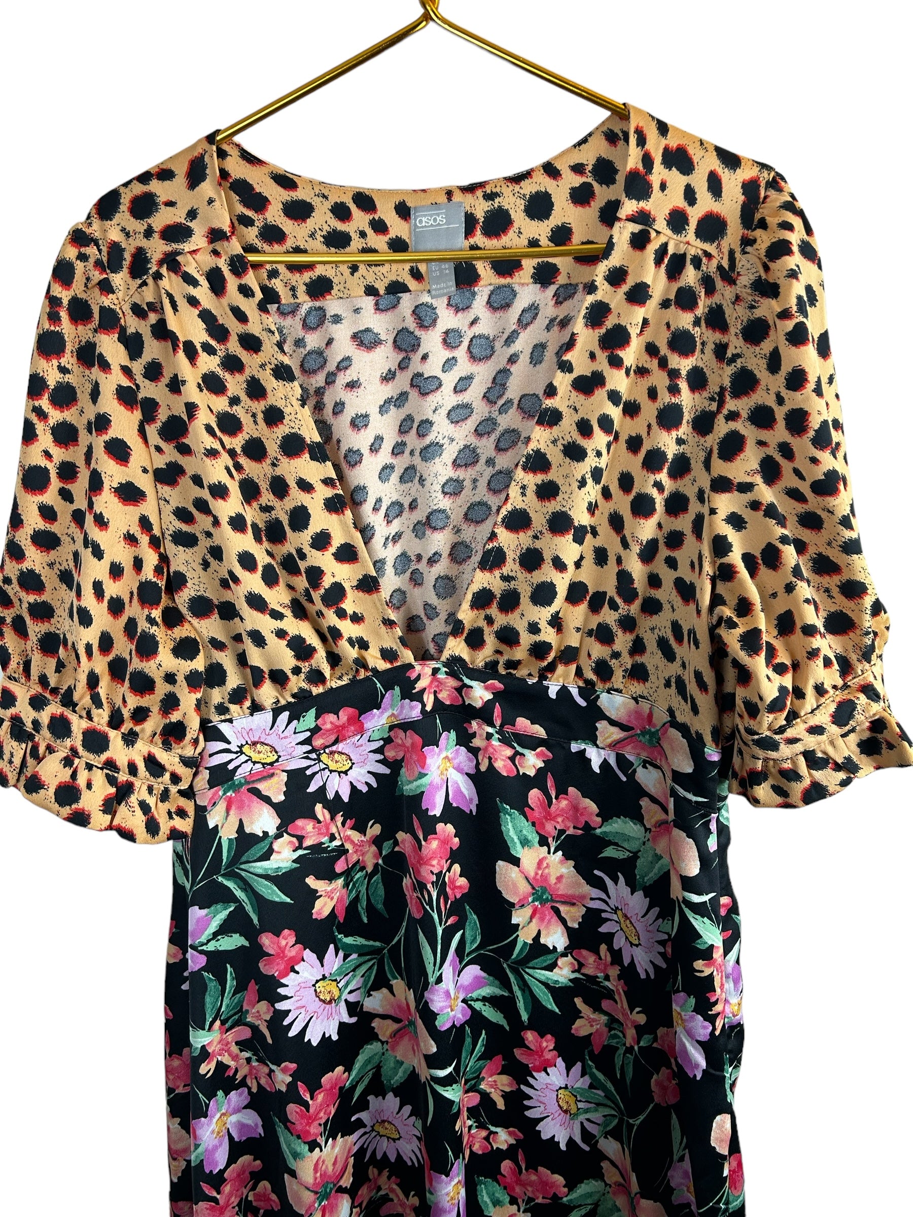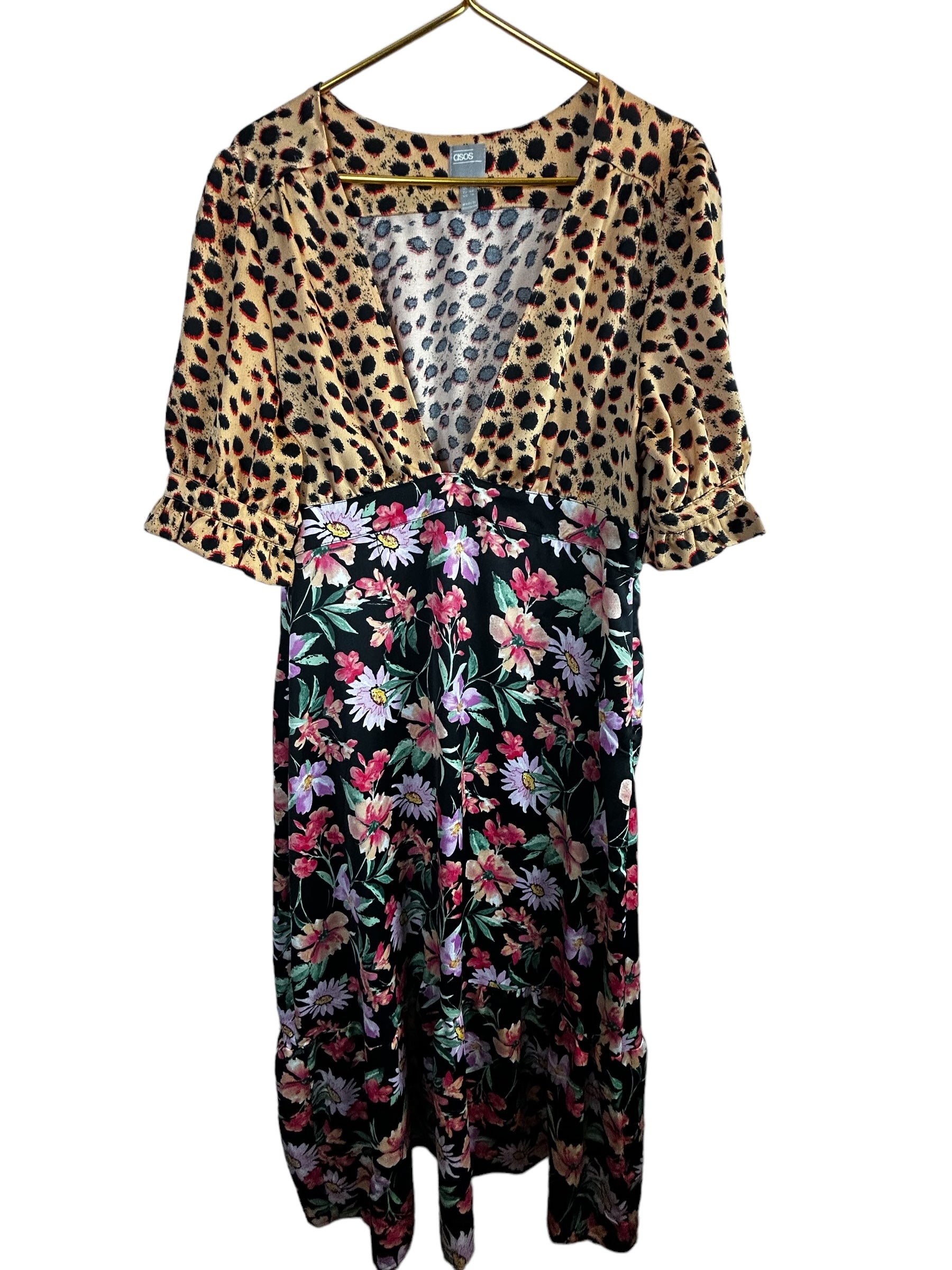 ASOS DESIGN plunge tea maxi dress with pep hem in mixed print size 14