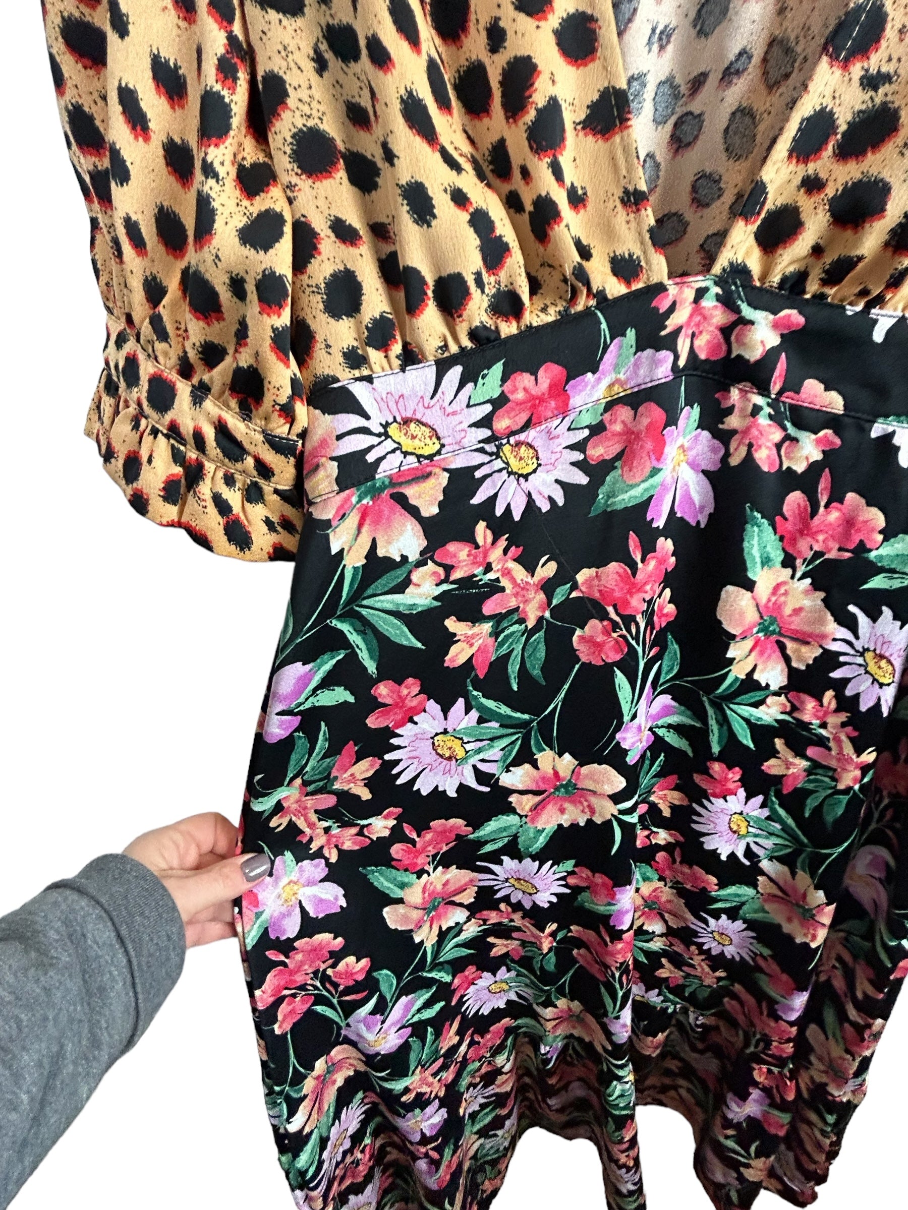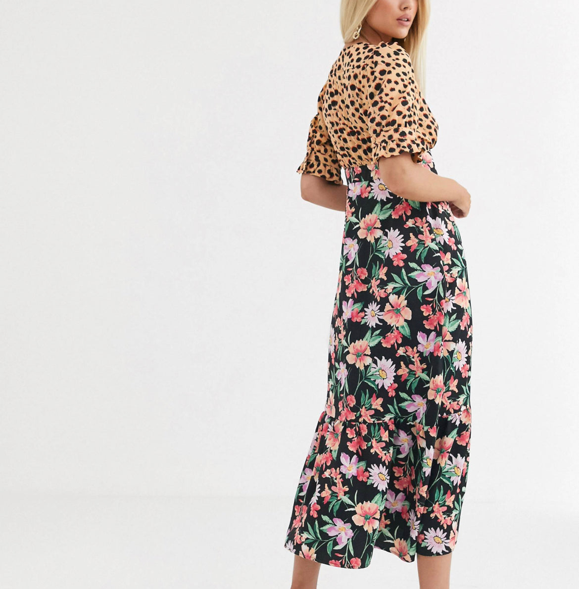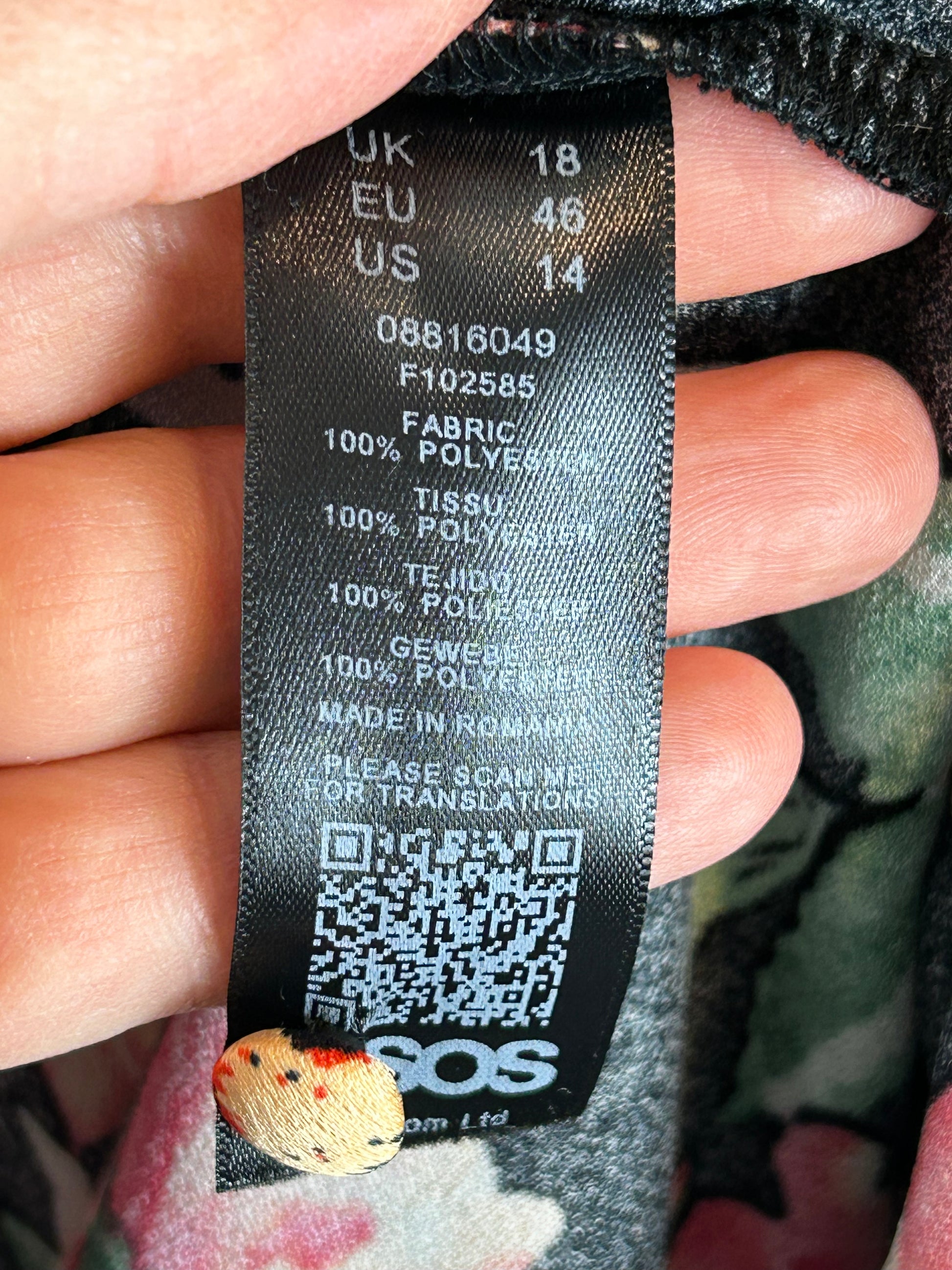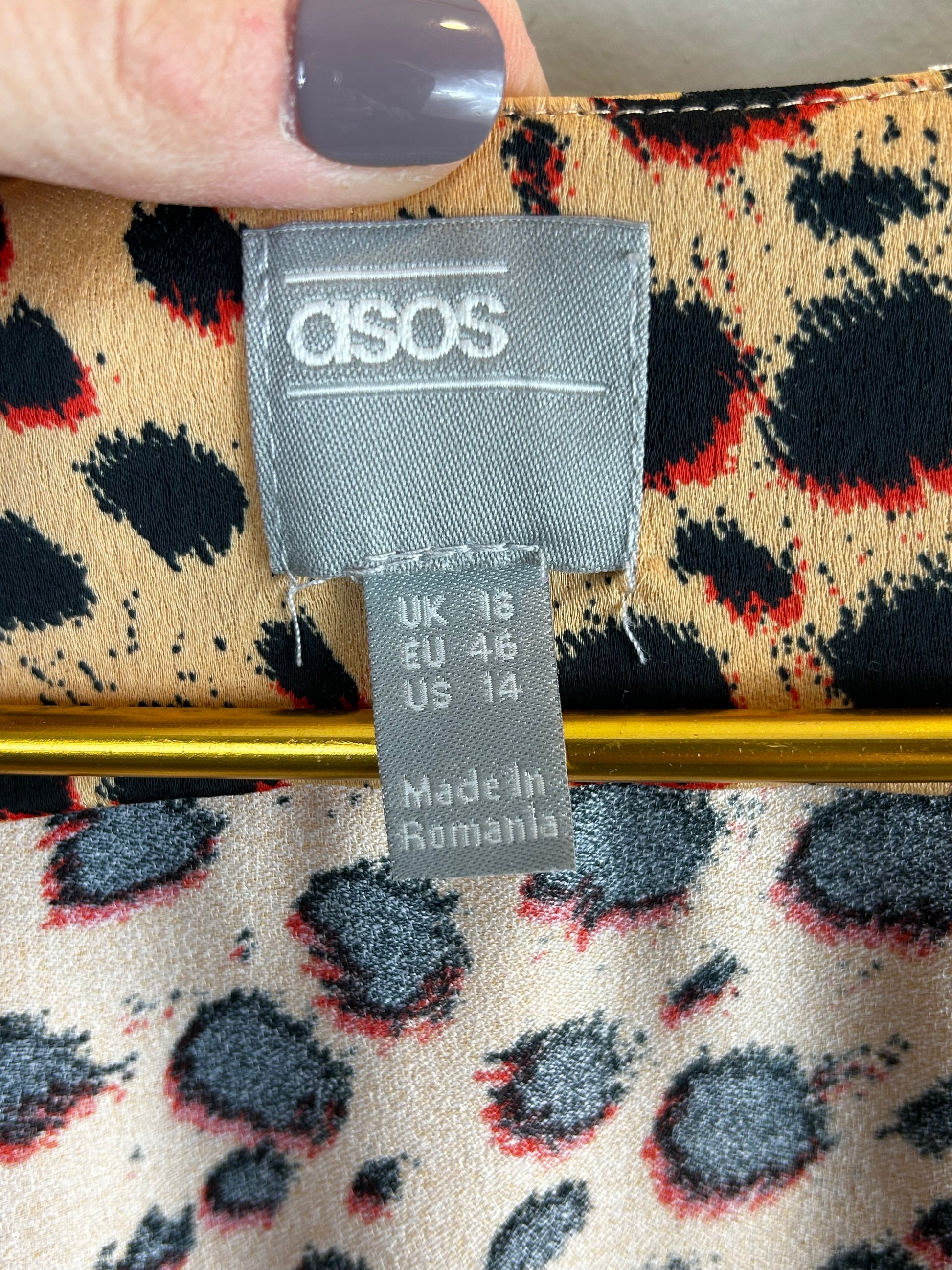 ASOS DESIGN plunge tea maxi dress with pep hem in mixed print size 14