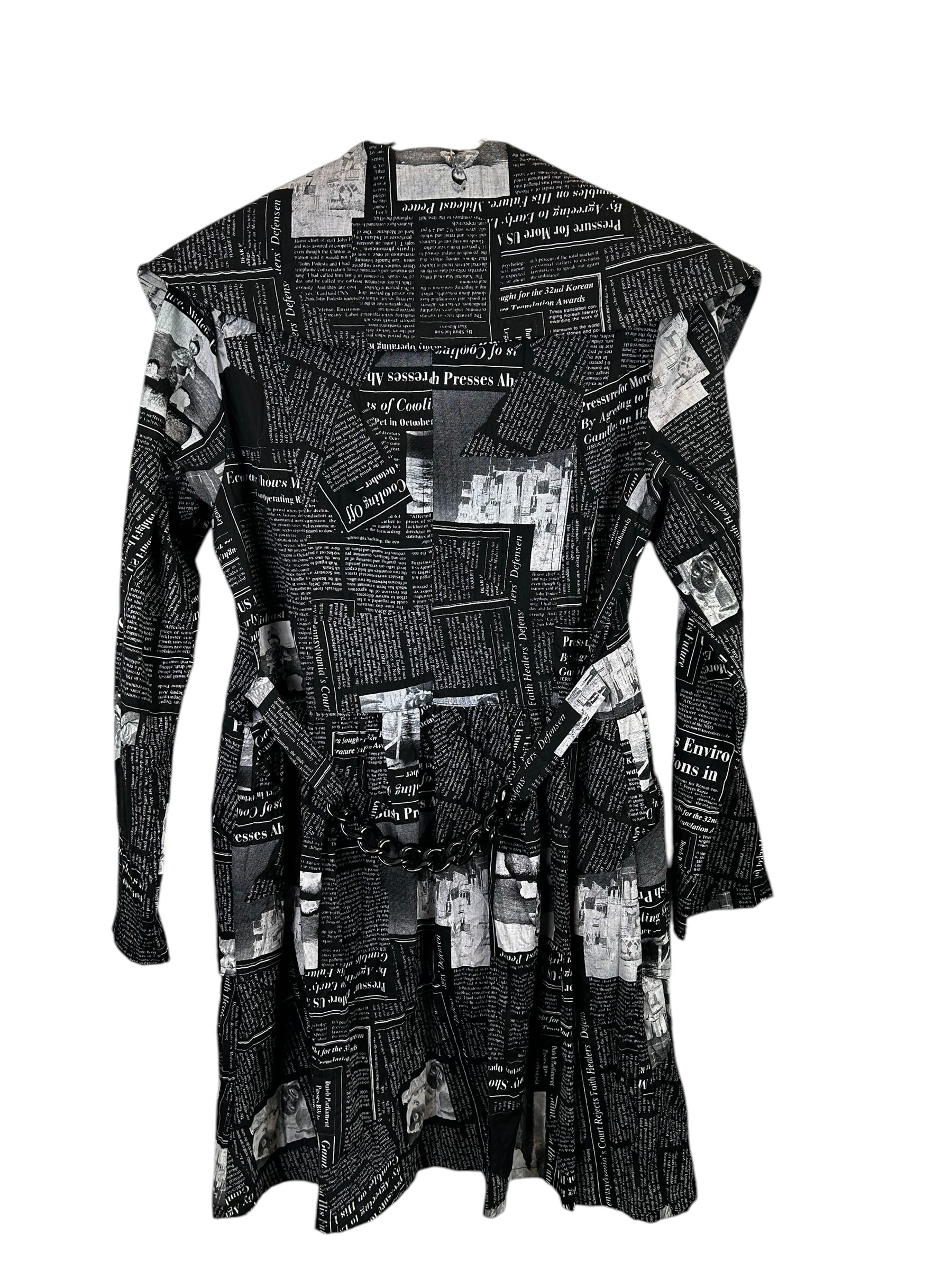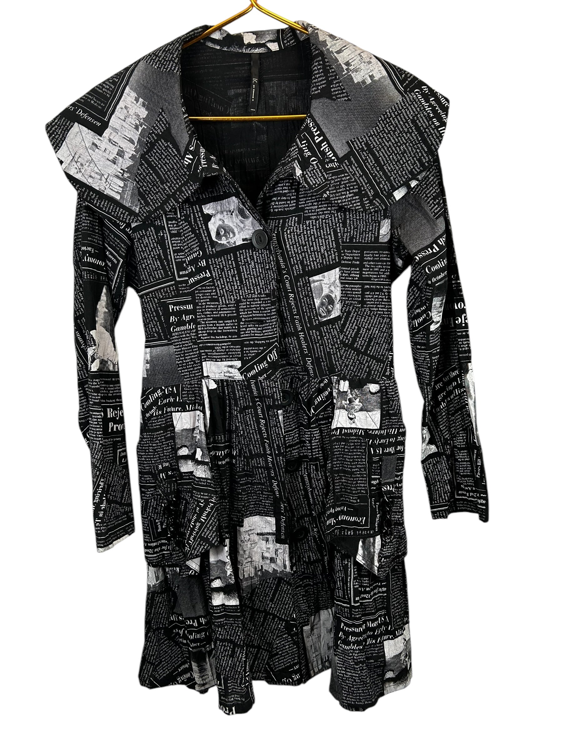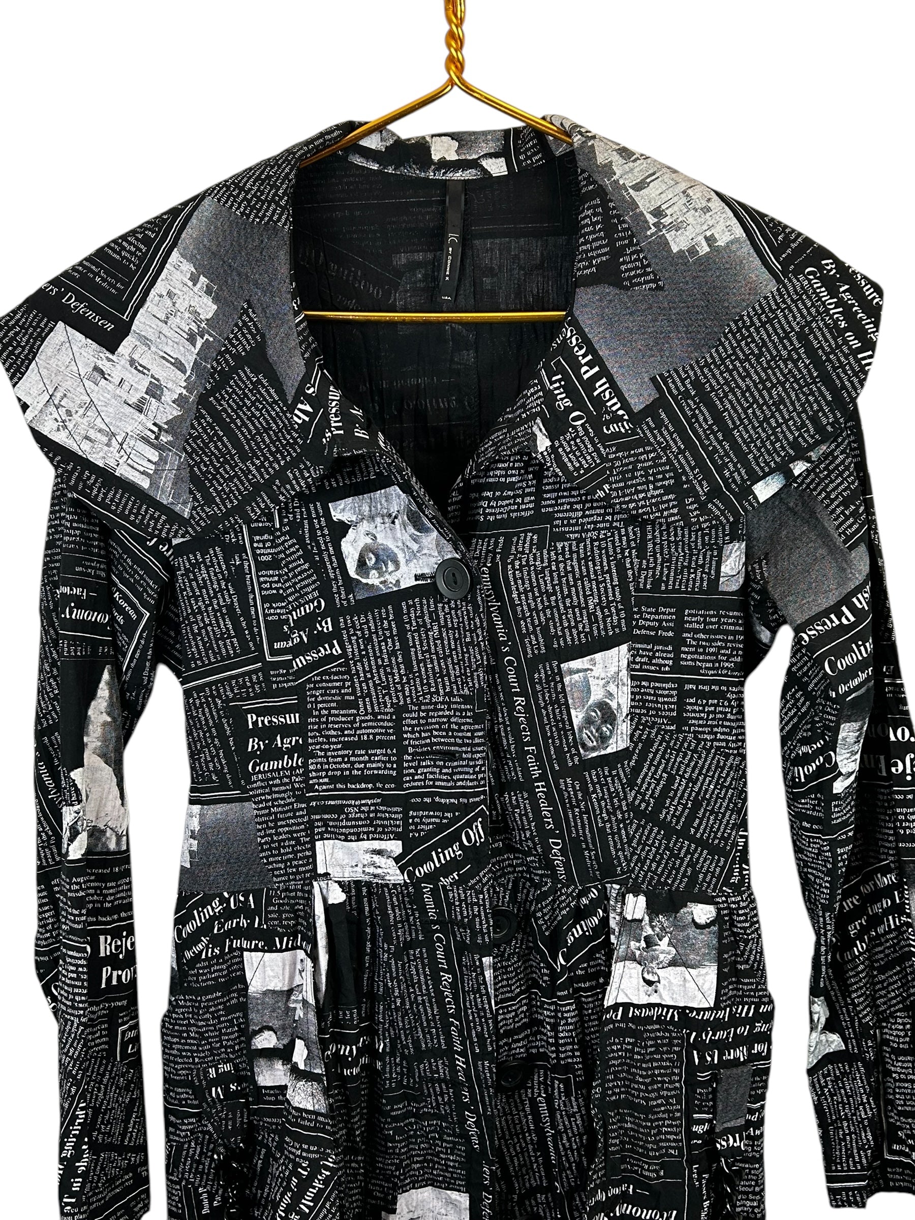 IC By Connie K Newspaper Print Asymmetrical Tunic Jacket MEDIUM Lagenlook Art to Wear