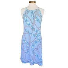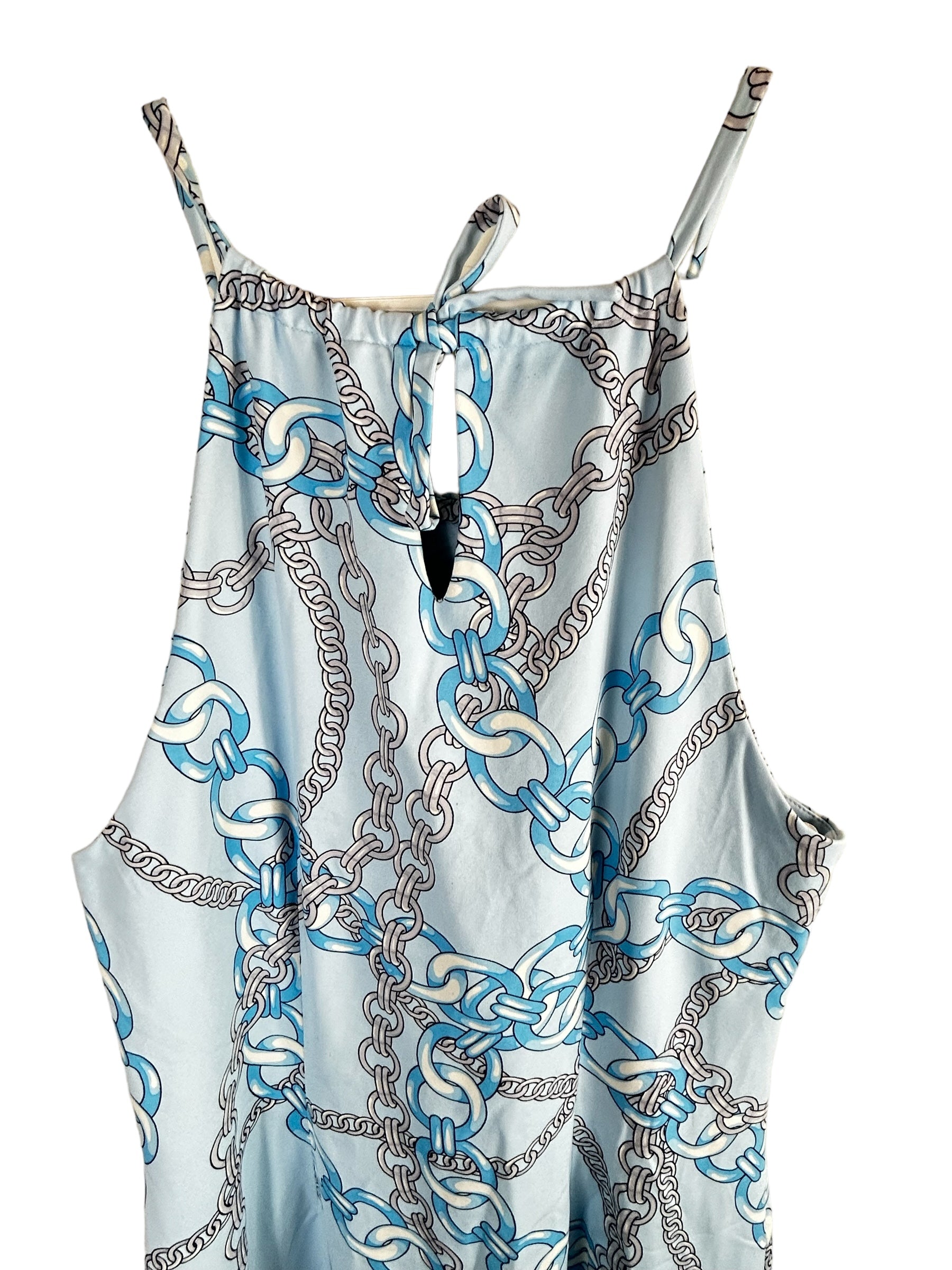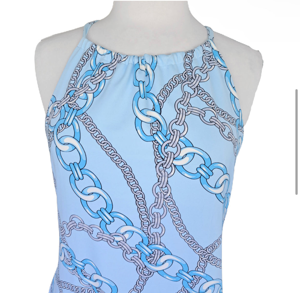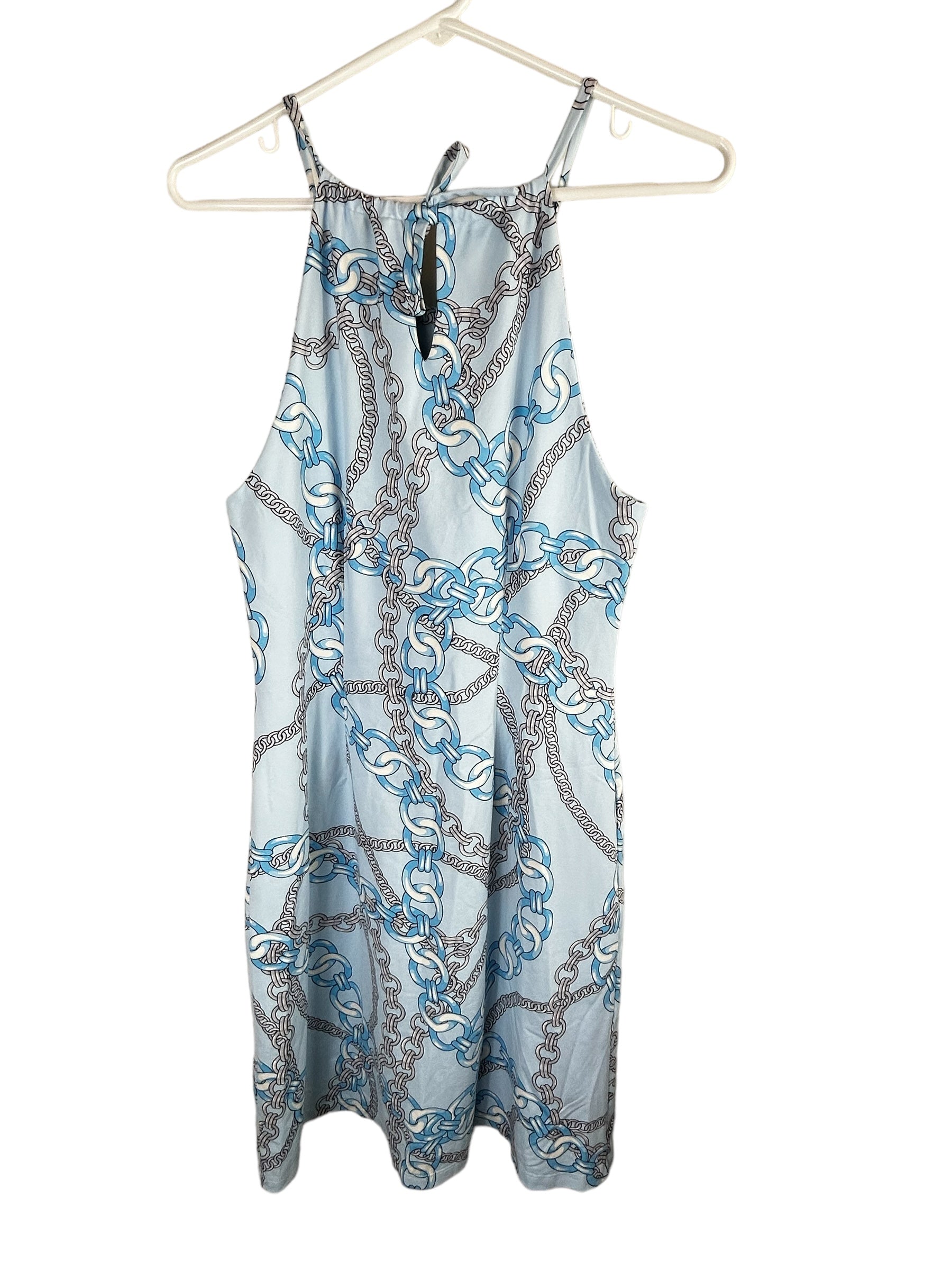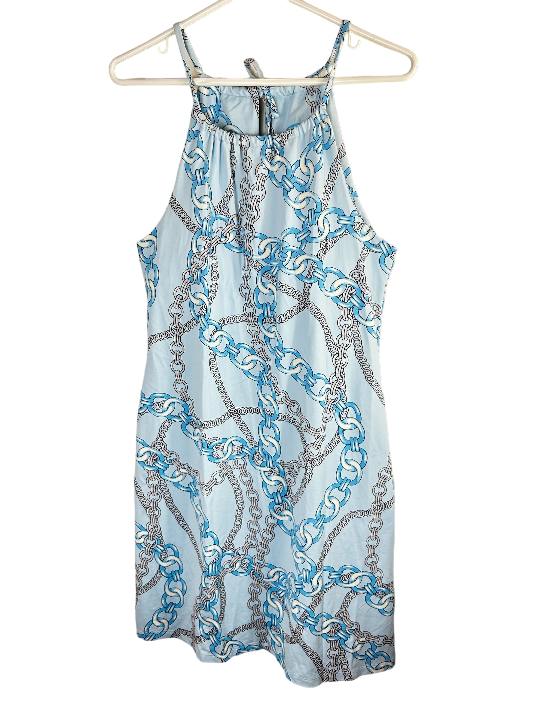 J McLaughlin Maria Halter Dress Light Blue Chain Print Size Small