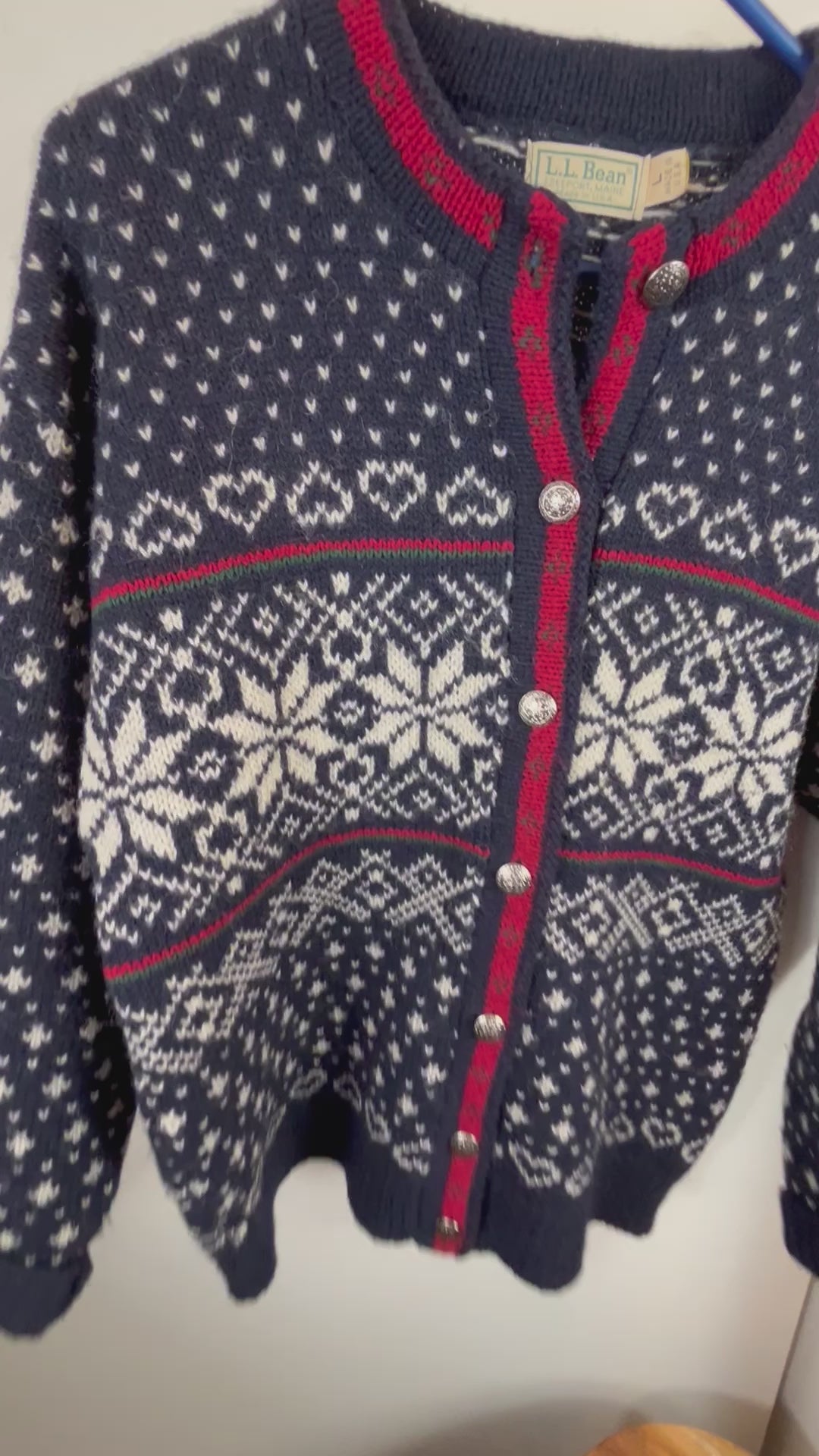 L.L. Bean vintage Cardigan XL 80s Nordic Fair Isle USA Made Winter Ski