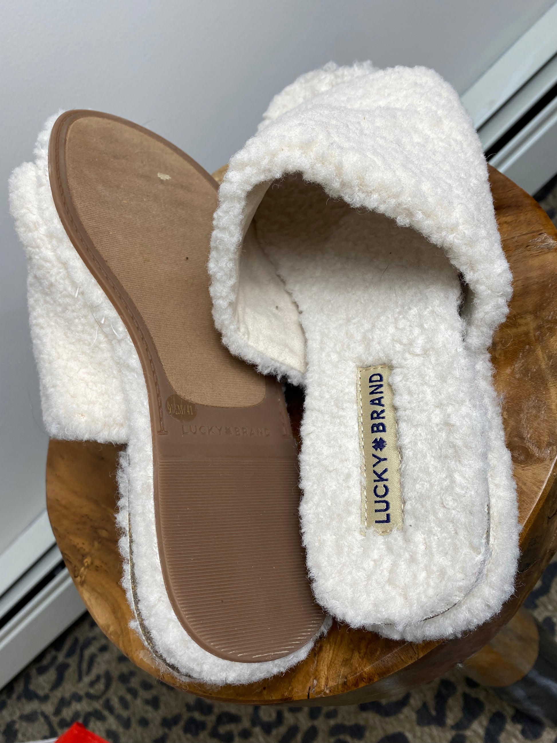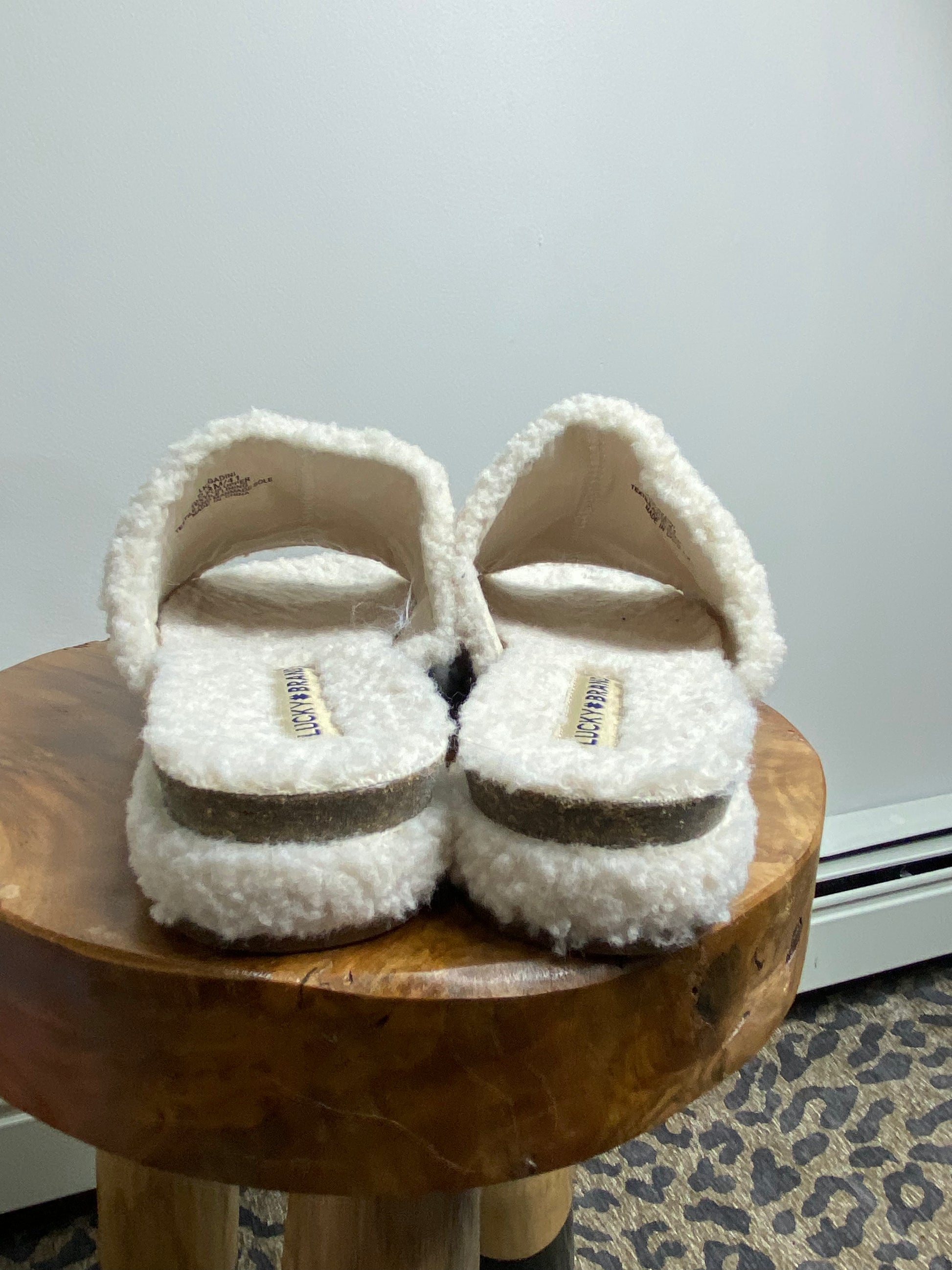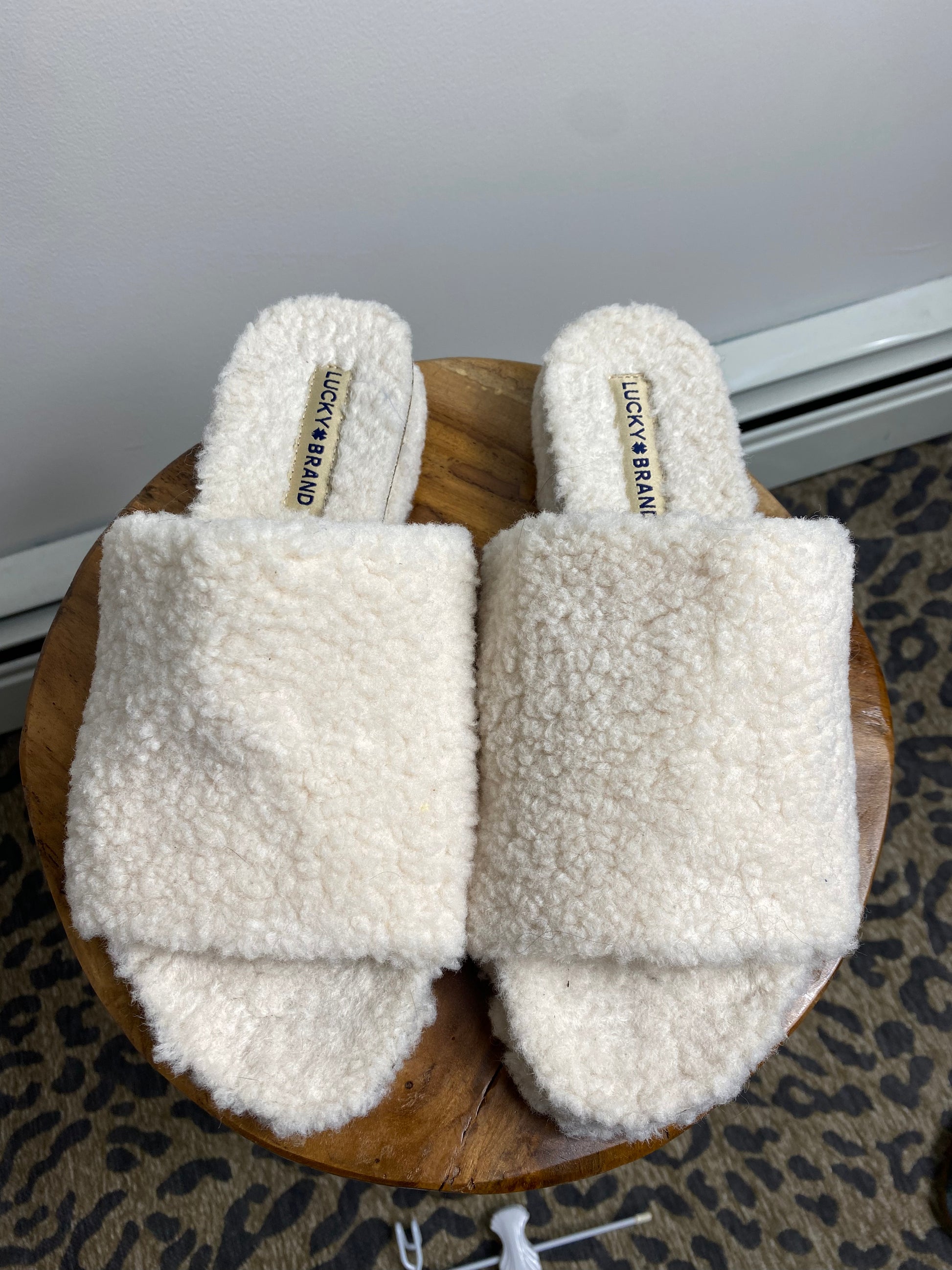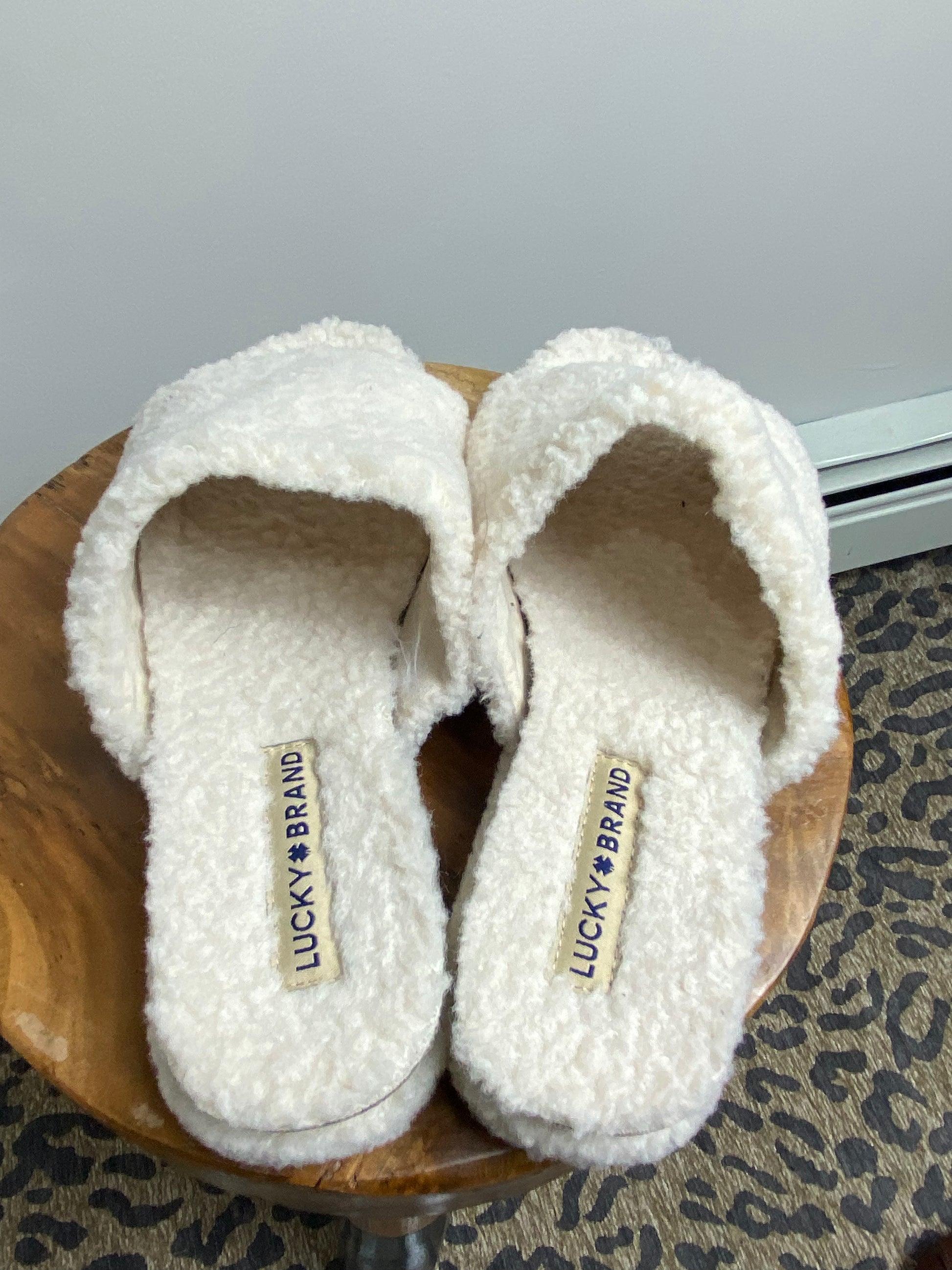 Comfy like you are walking on clouds, easy to slip on and off and are warm and fuzzy. Where them around the home or out for errands.