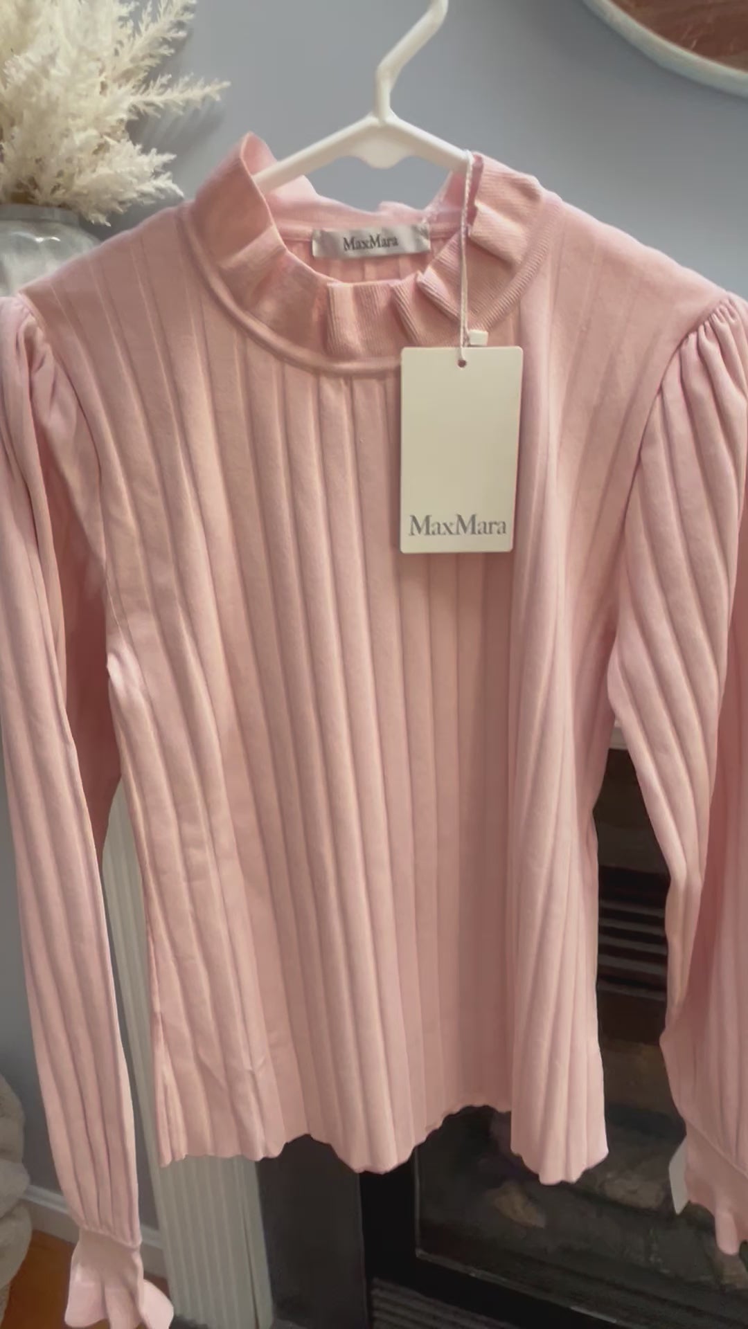Max Mara Zoraide Ruffle Collar Ribbed Sweater Color Rosa. Made in Romania.