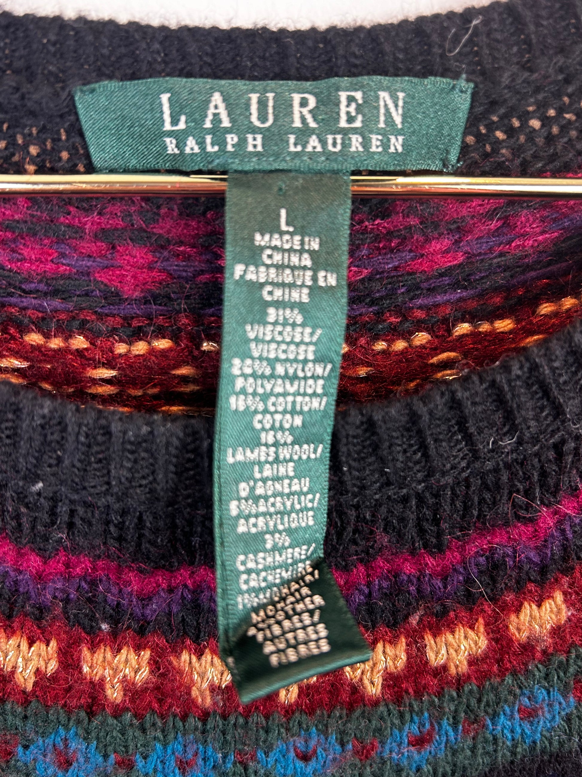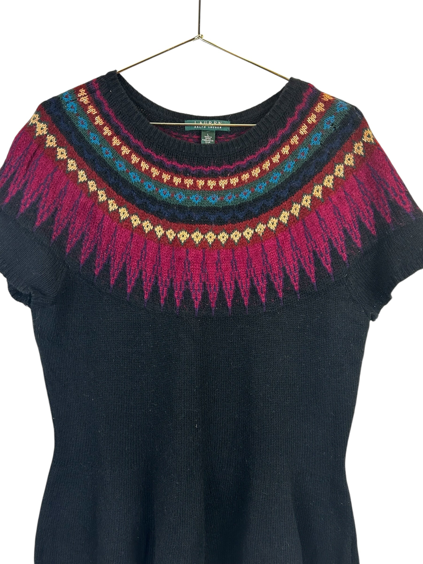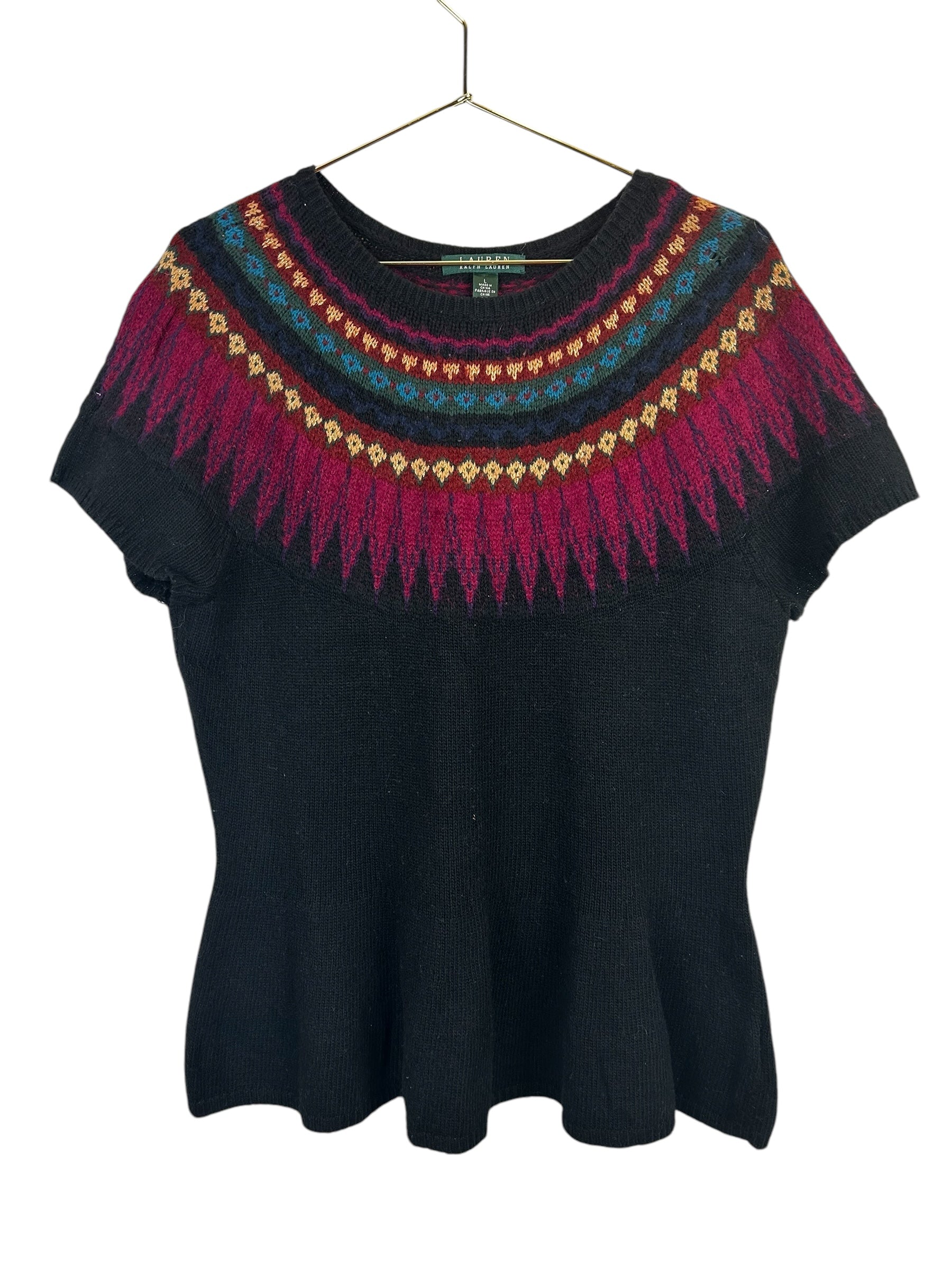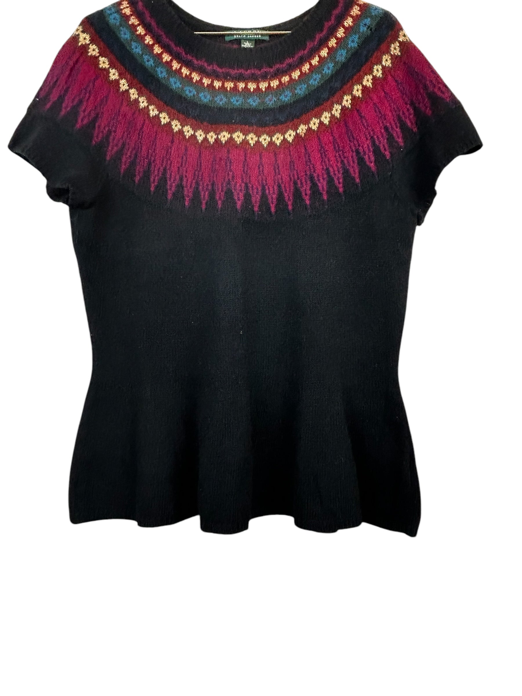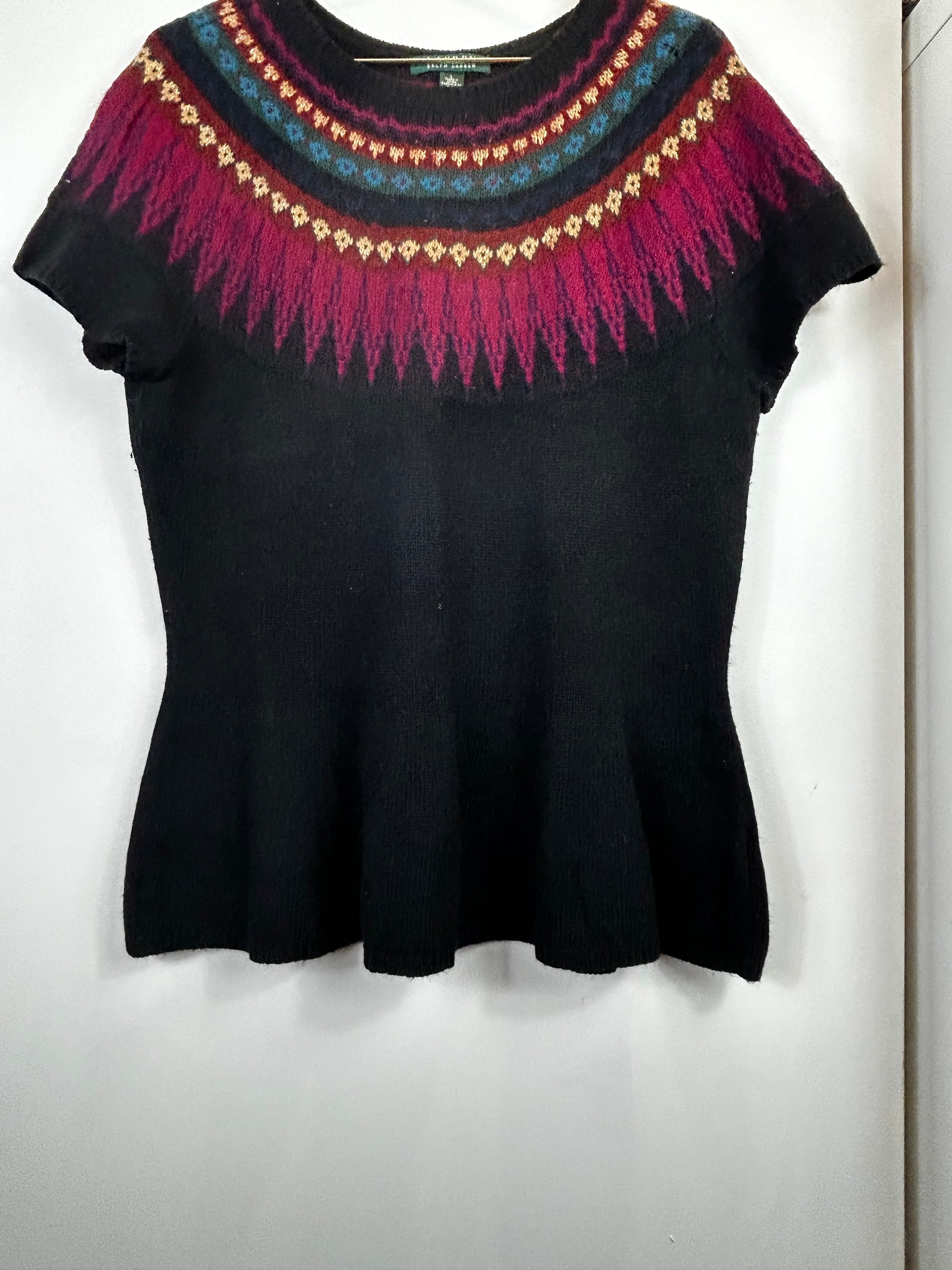 Ralph Lauren womens Cashmere wool Fair Isle Peplum Short Sleeve Tunic sweater