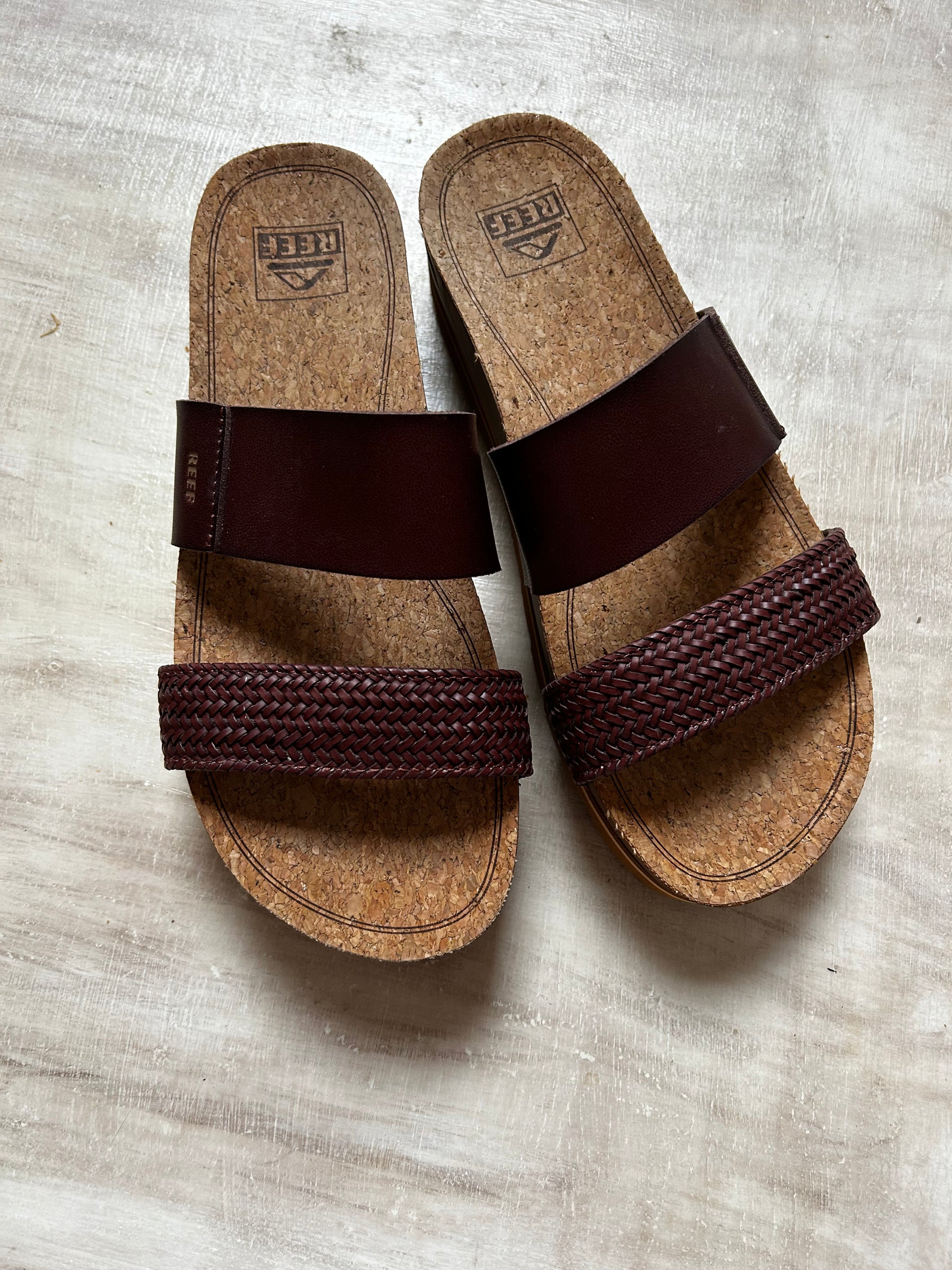 Signature cushion with rebound footbed with a wider shape and generous arch support and heel cupping. Lightweight and durable EVA outsole with lug design. 100% natural Cork footbed cover.