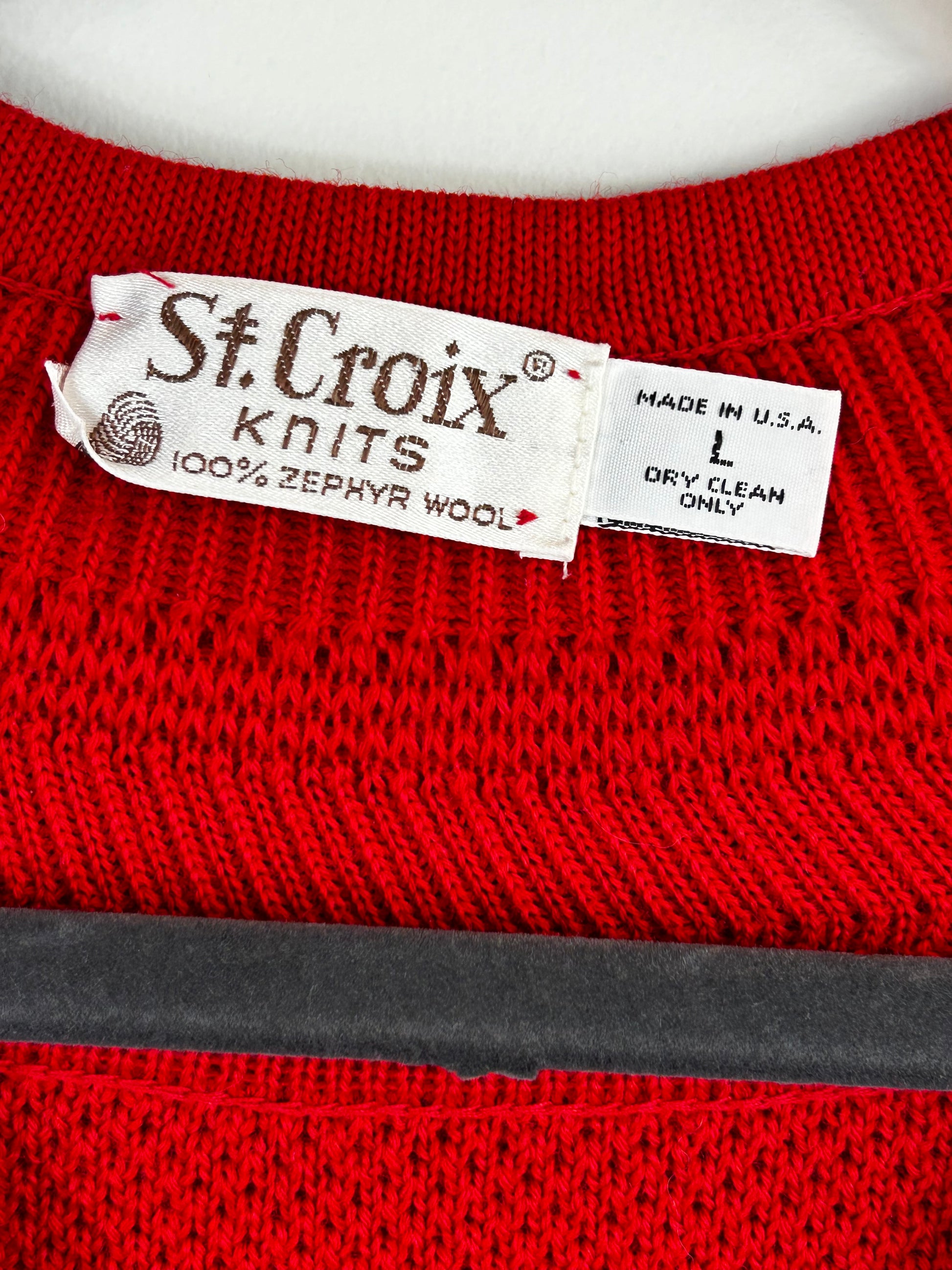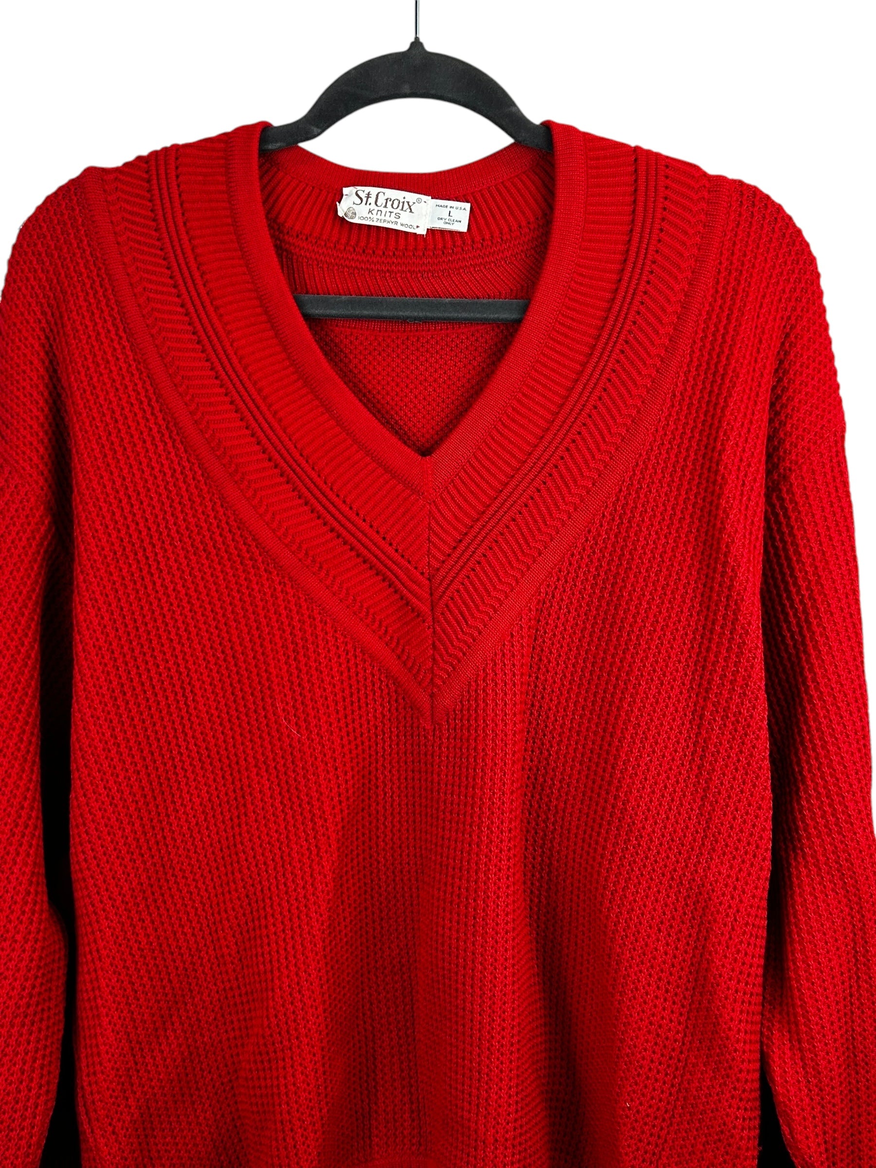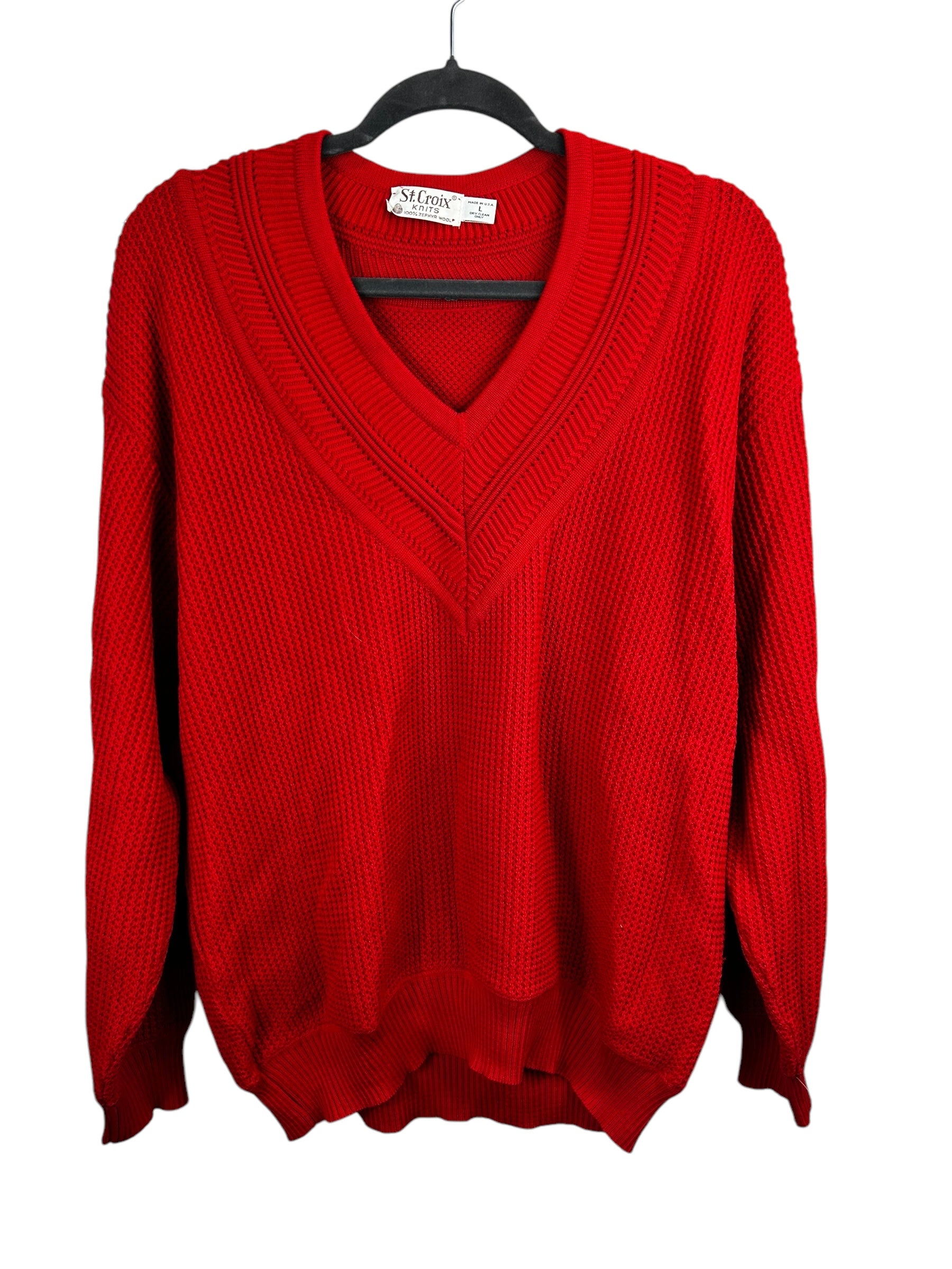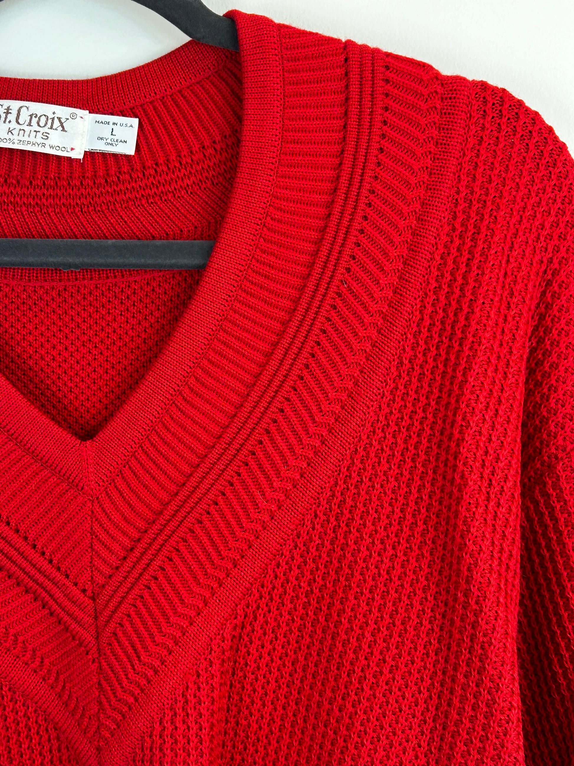 St. Croix Knits Men's Red 100% Zephyr Wool V-Neck Knit Sweater - Size L