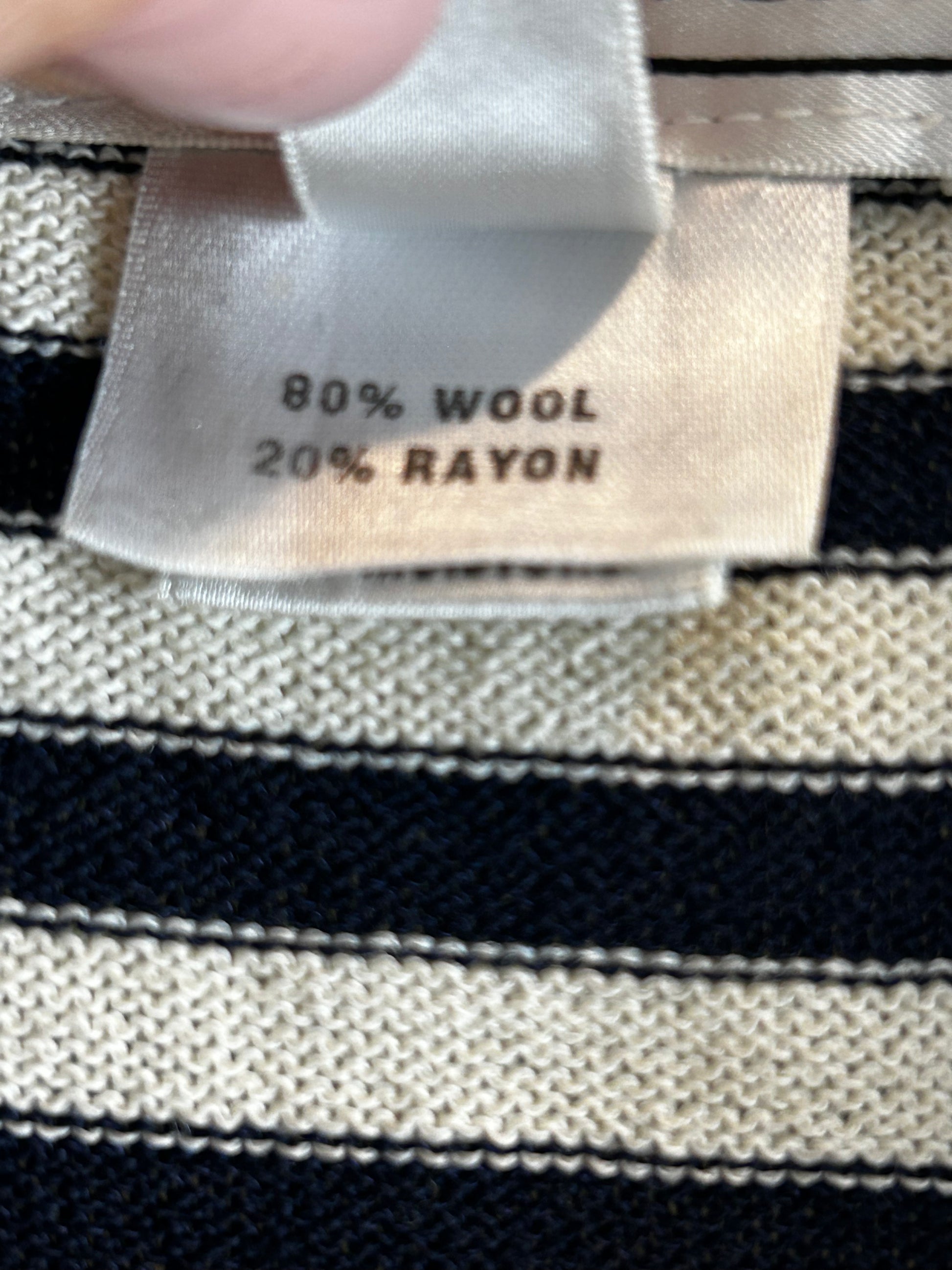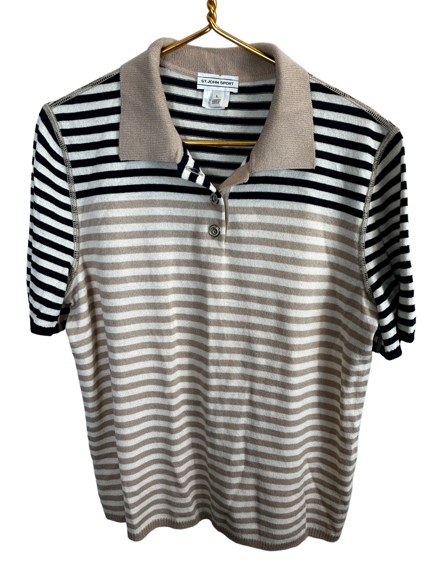 St. John Sport VTGE 90s striped knit polo navy white beige short sleeve top LG