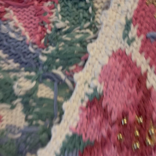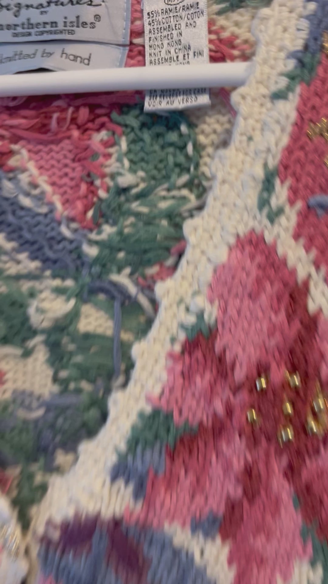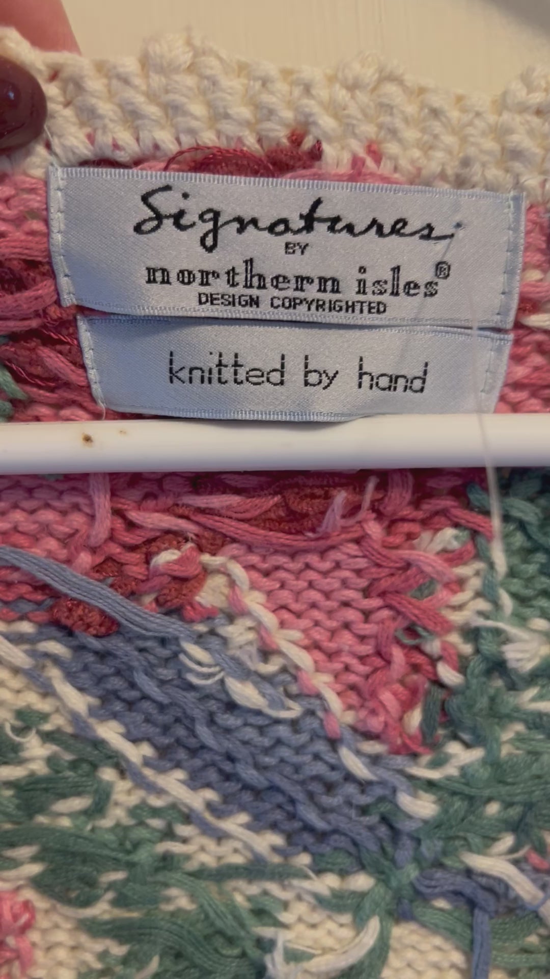 Vintage Northern Isles pink green blue floral vest hand knit shabby chic girly country