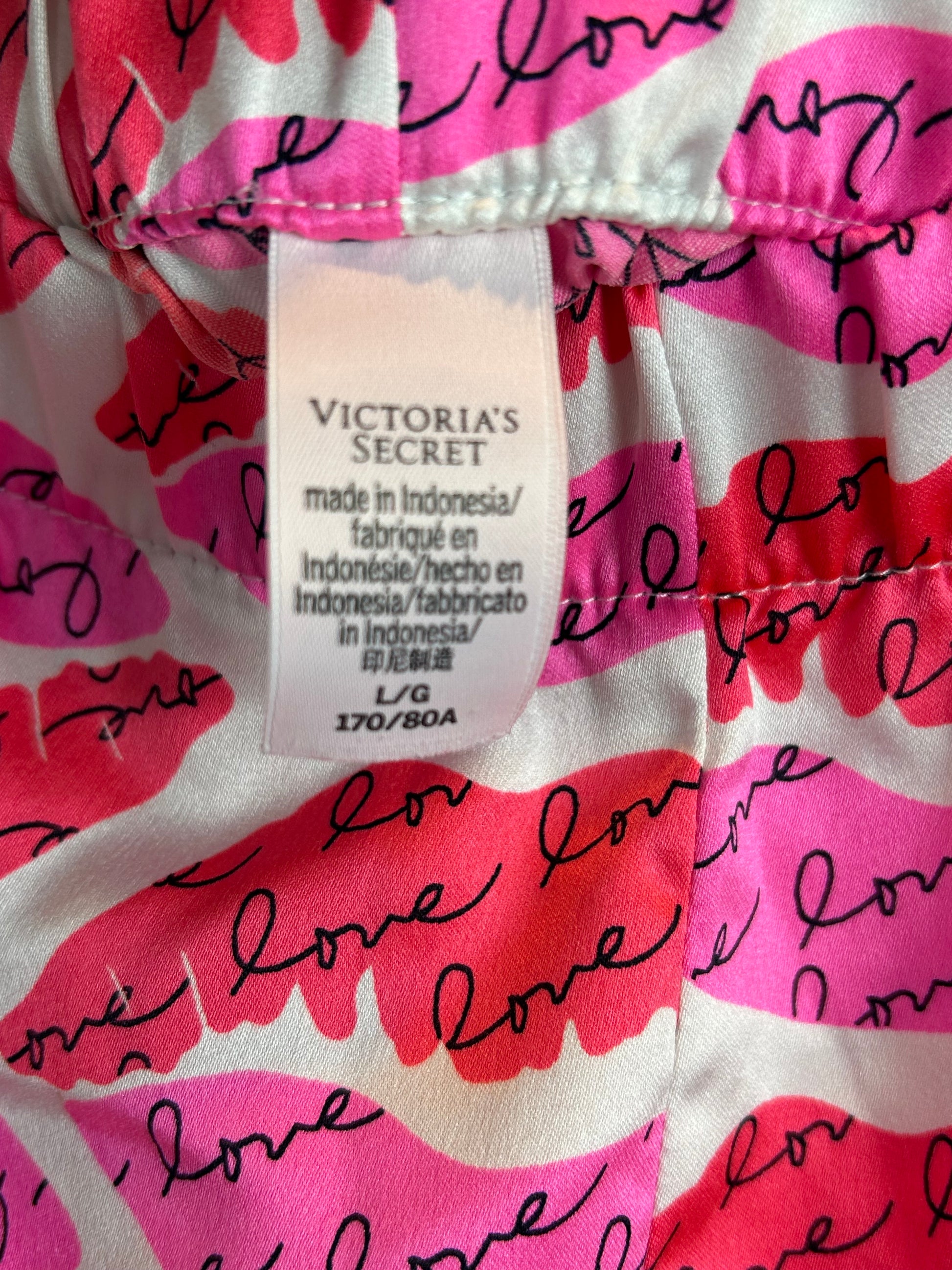 Victoria's Secret Vintage Satin feel 💋 Lips pajama set Long Sleeve top and pants