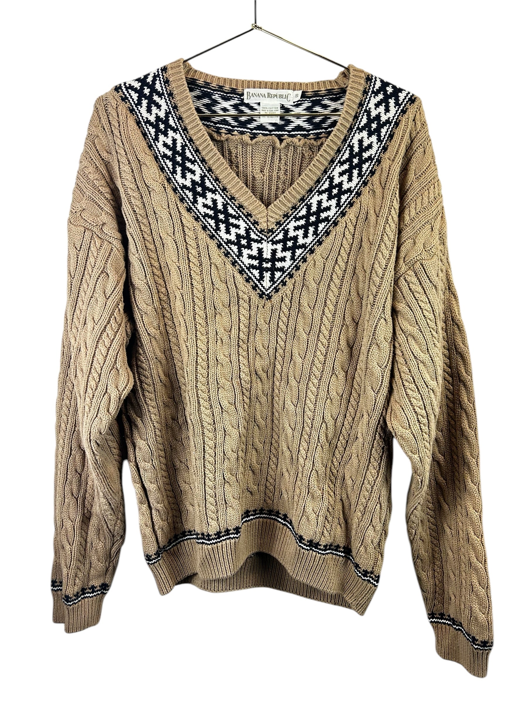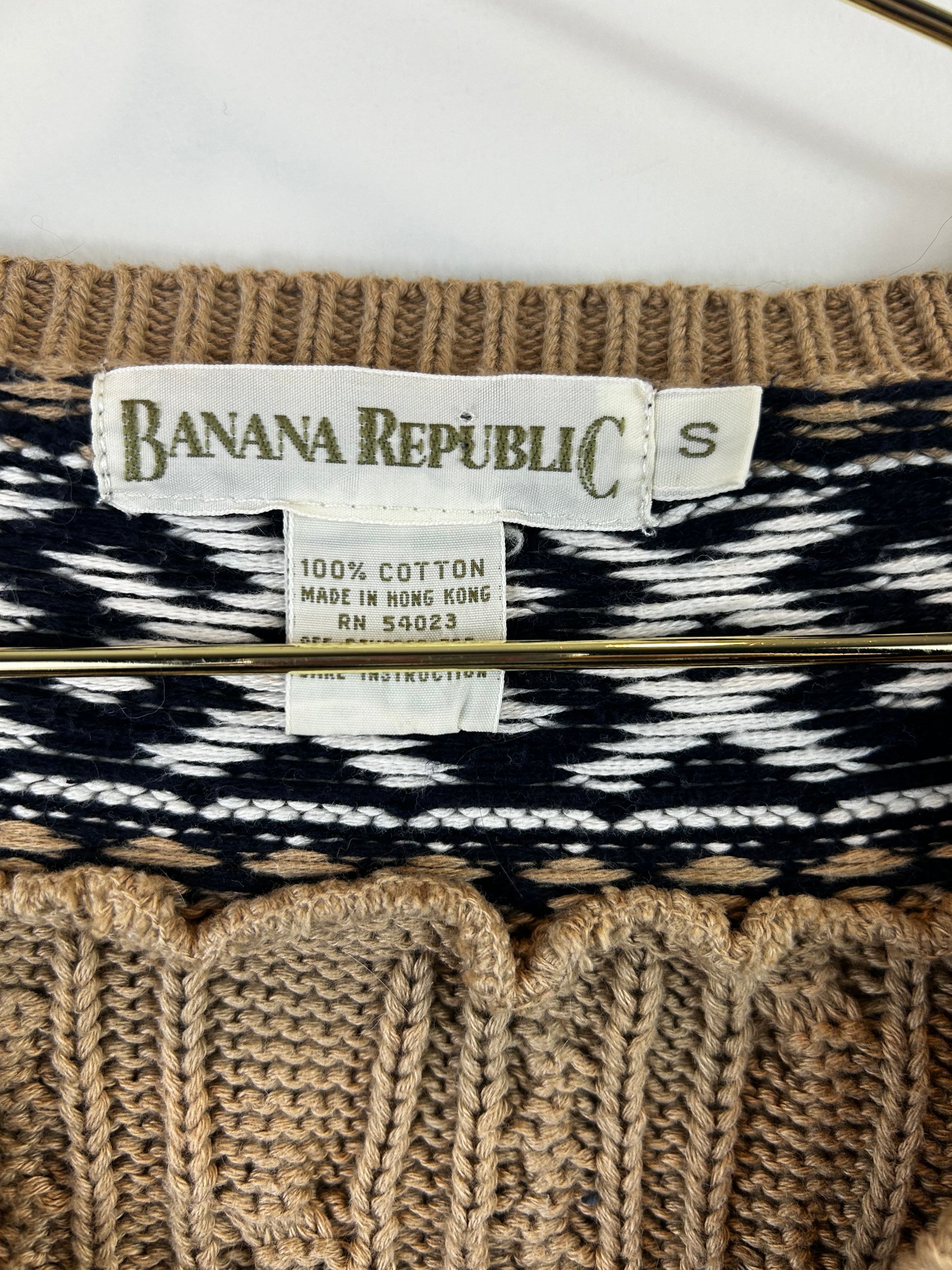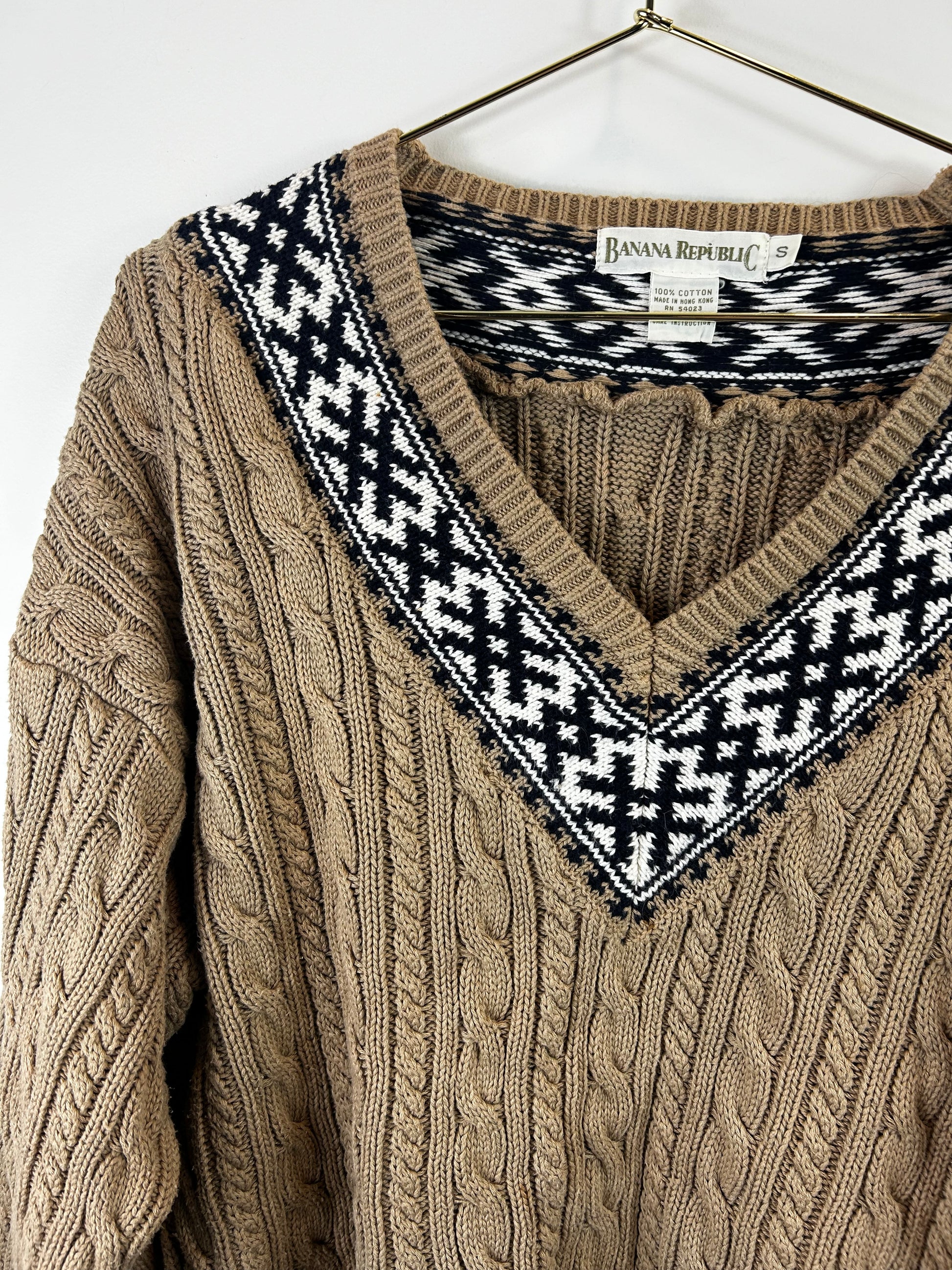 Vintage 90s Banana Republic Cable Knit Sweater SM Brown Pullover V Neck