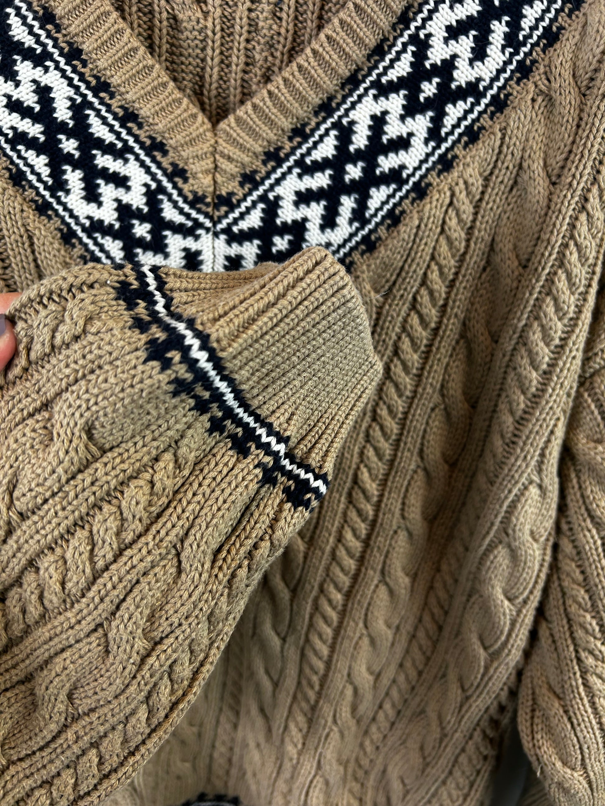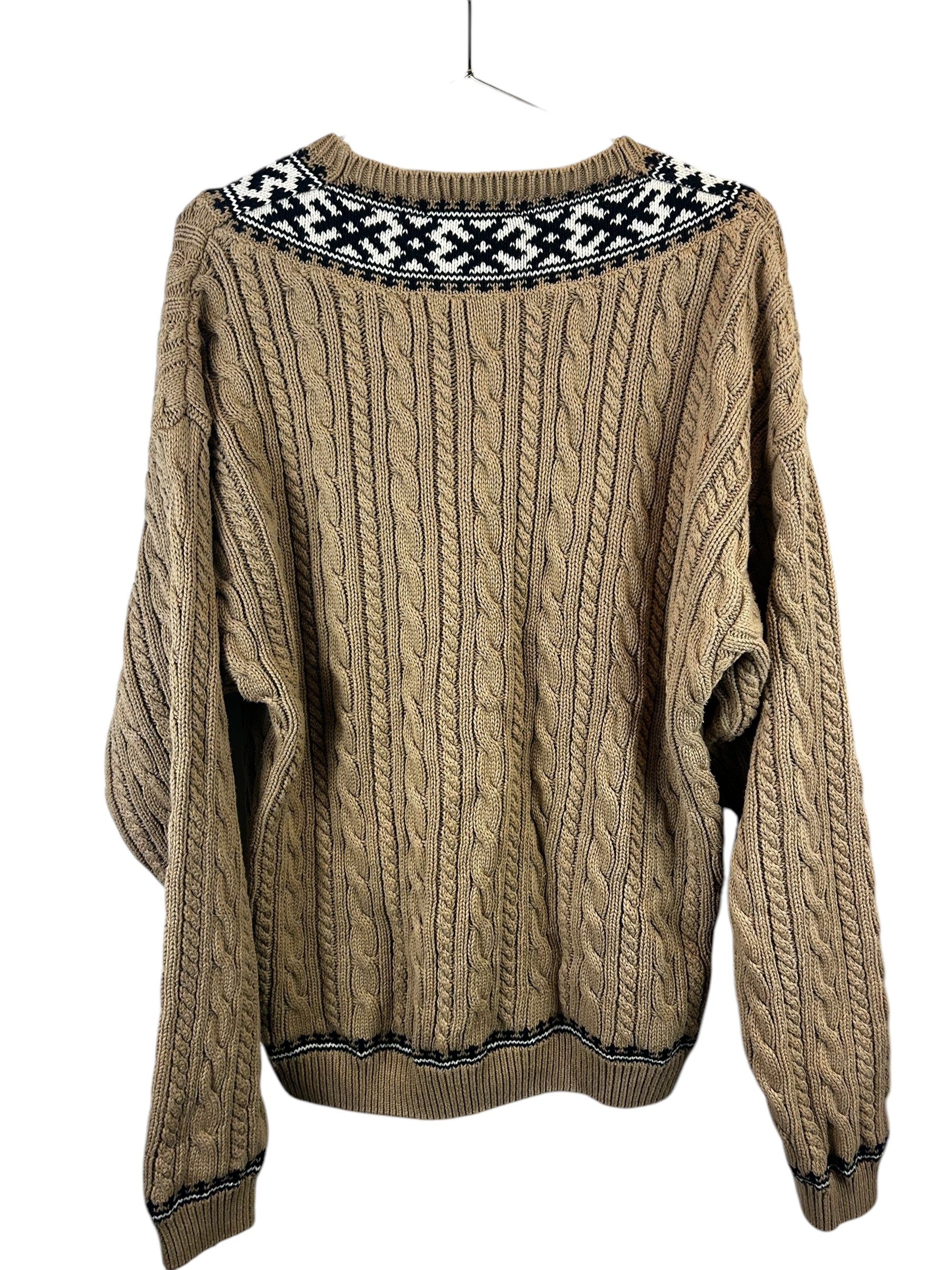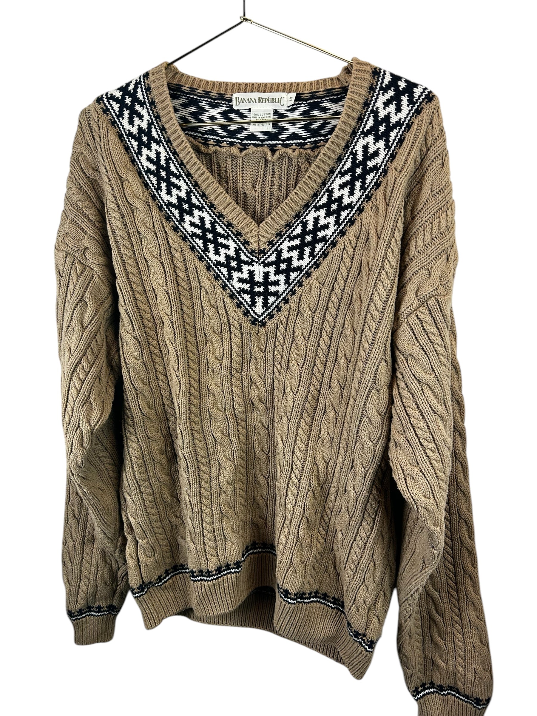 Vintage 90s Banana Republic Cable Knit Sweater SM Brown Pullover V Neck
