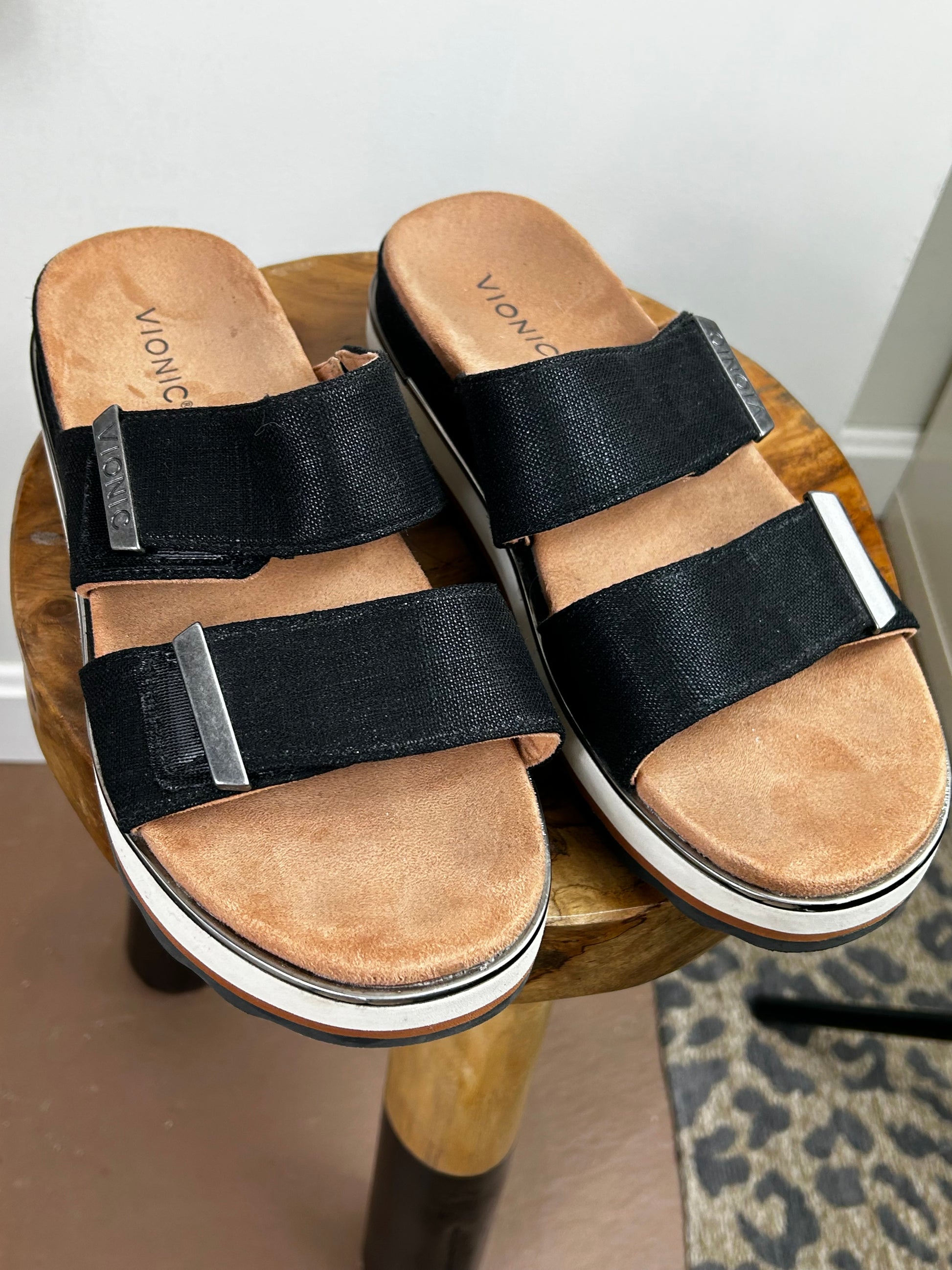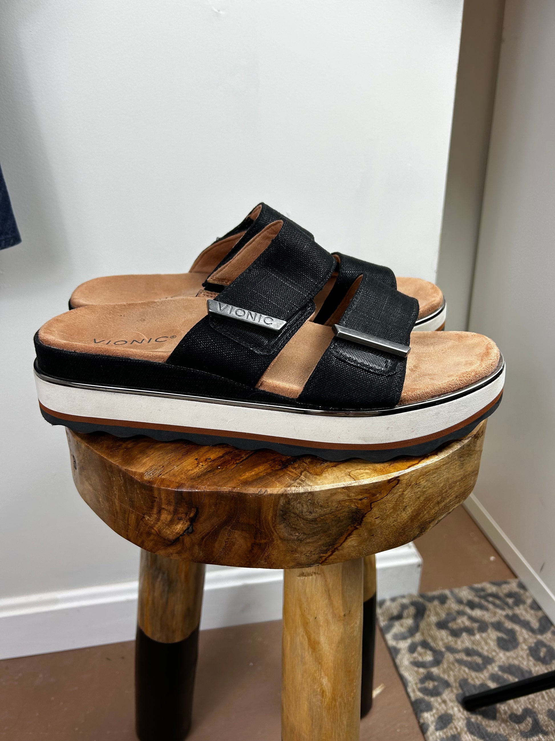 VIONIC WOMEN'S BRANDIE FLATFORM SANDAL BLACK SZ 9
