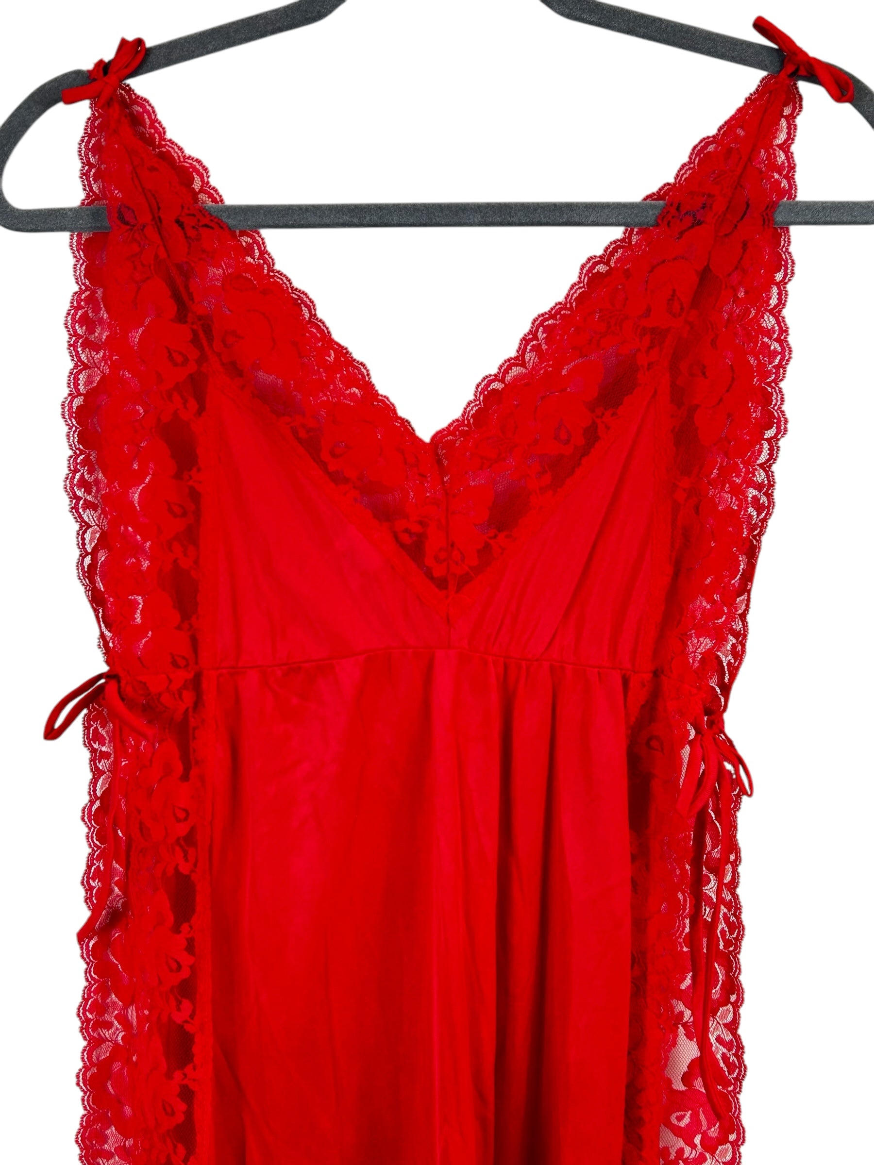 Vtg 70s 80s Red Lace Lounge Dress Nightgown Size medium Nylon