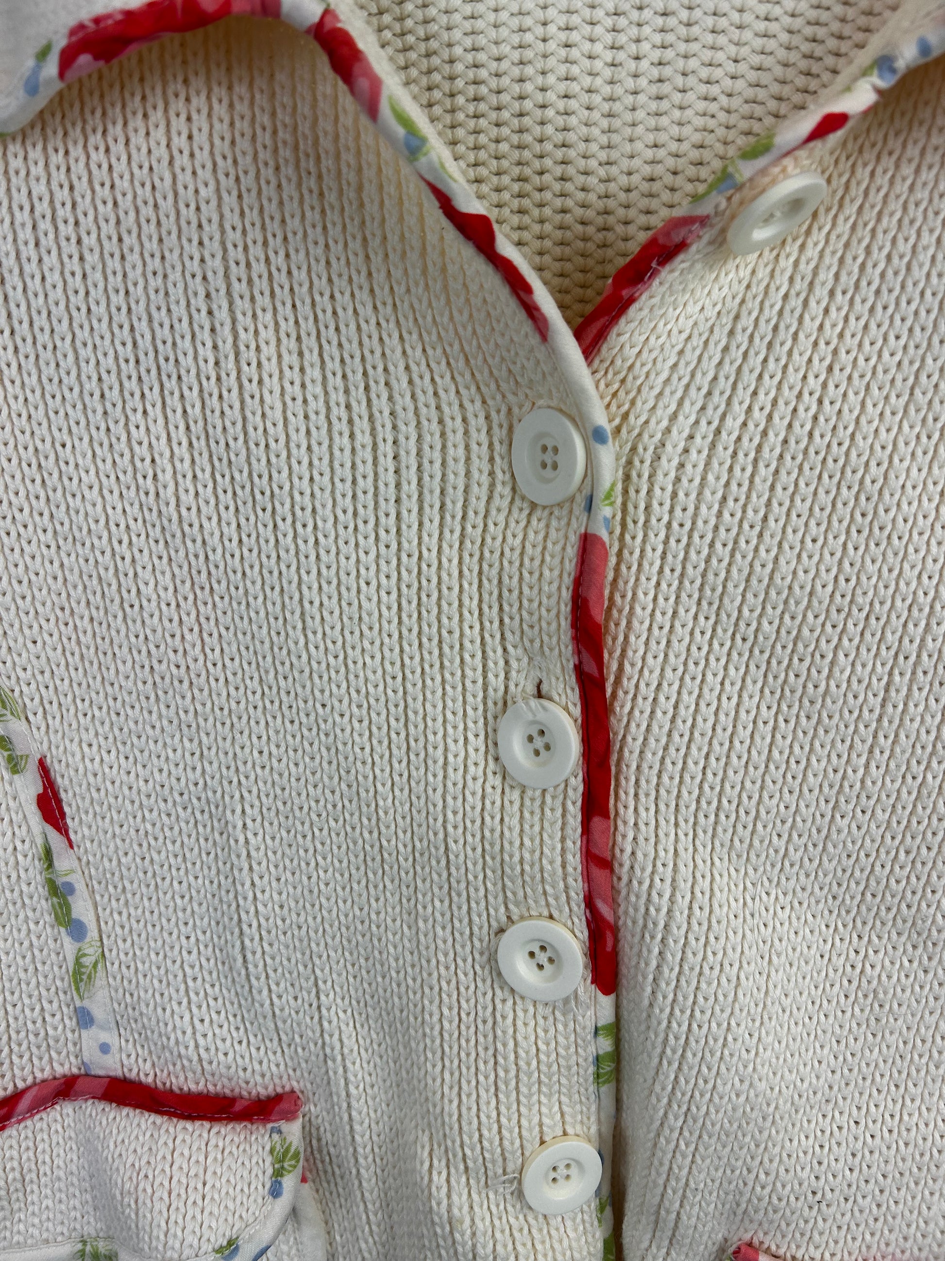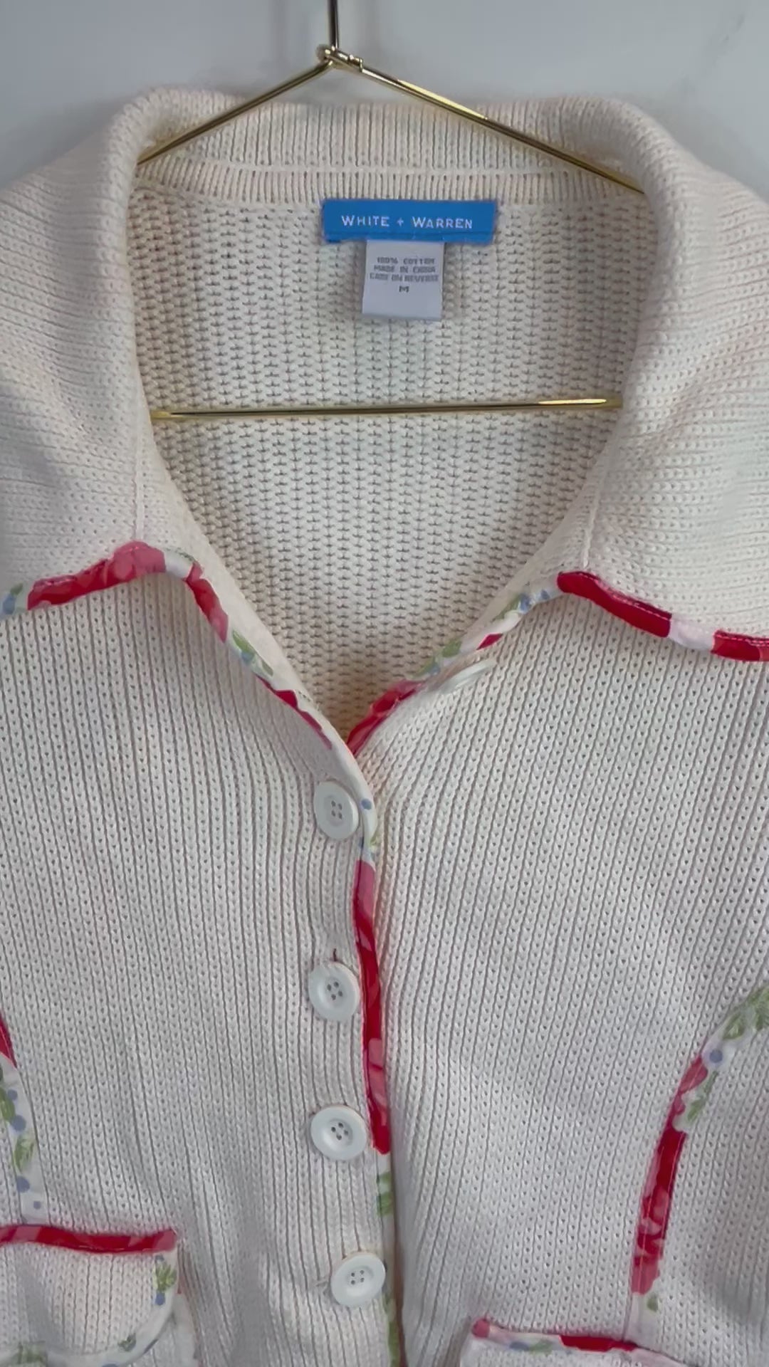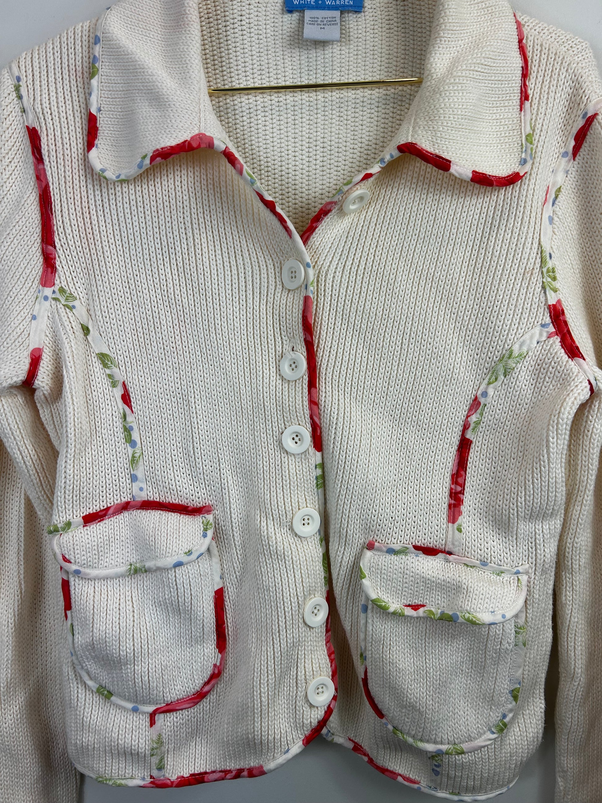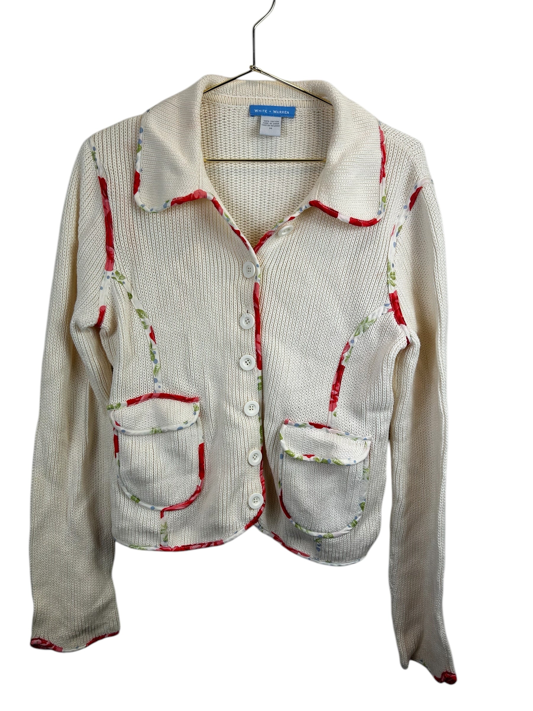 White + Warren Cream Floral Trim Cardigan
